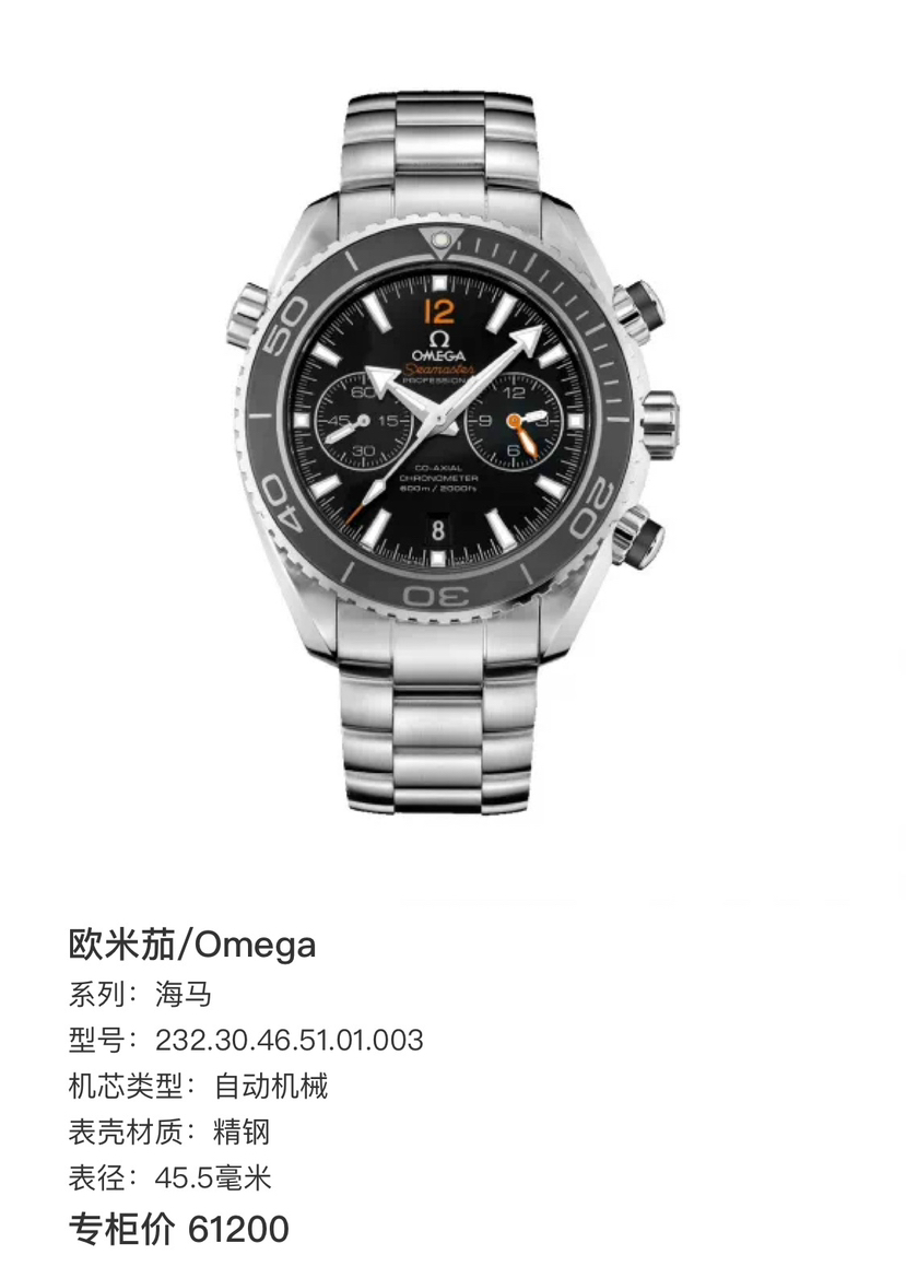 欧米茄/Omega 海马 232.30.46.51.01.003 自动机械 精钢 45.5毫米 专柜价61200