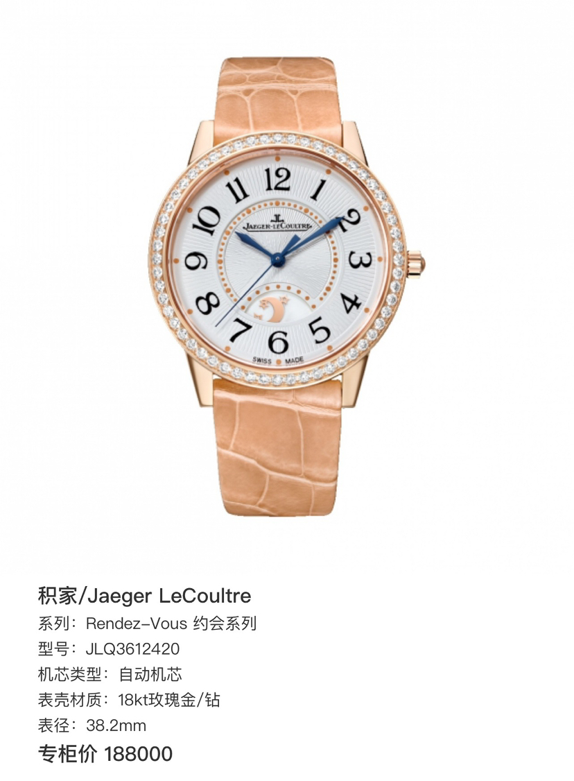 18年全套积家Q3612420 约会系列 38.2mm 自动机械 玫瑰金 热门款 99新 全套附件 2018年卡。北京现货。欢迎操作。
