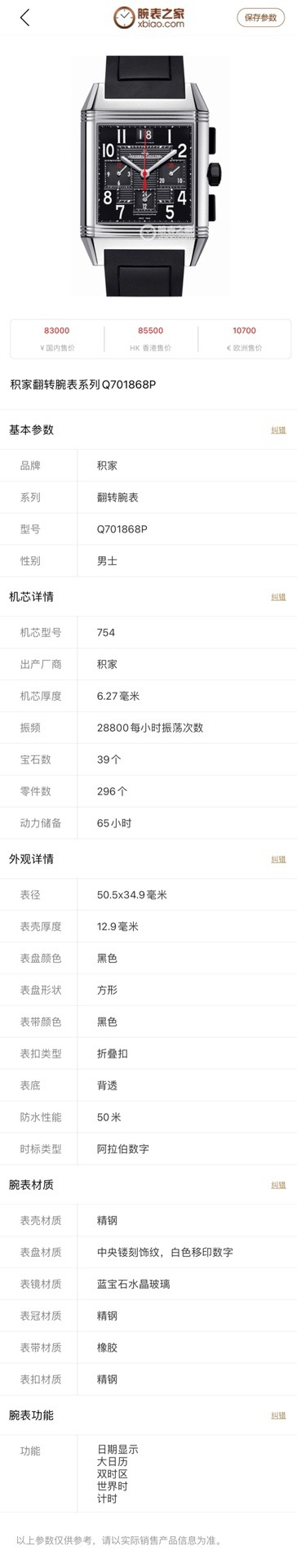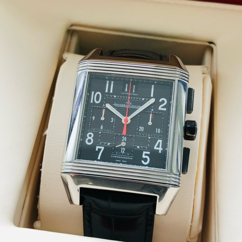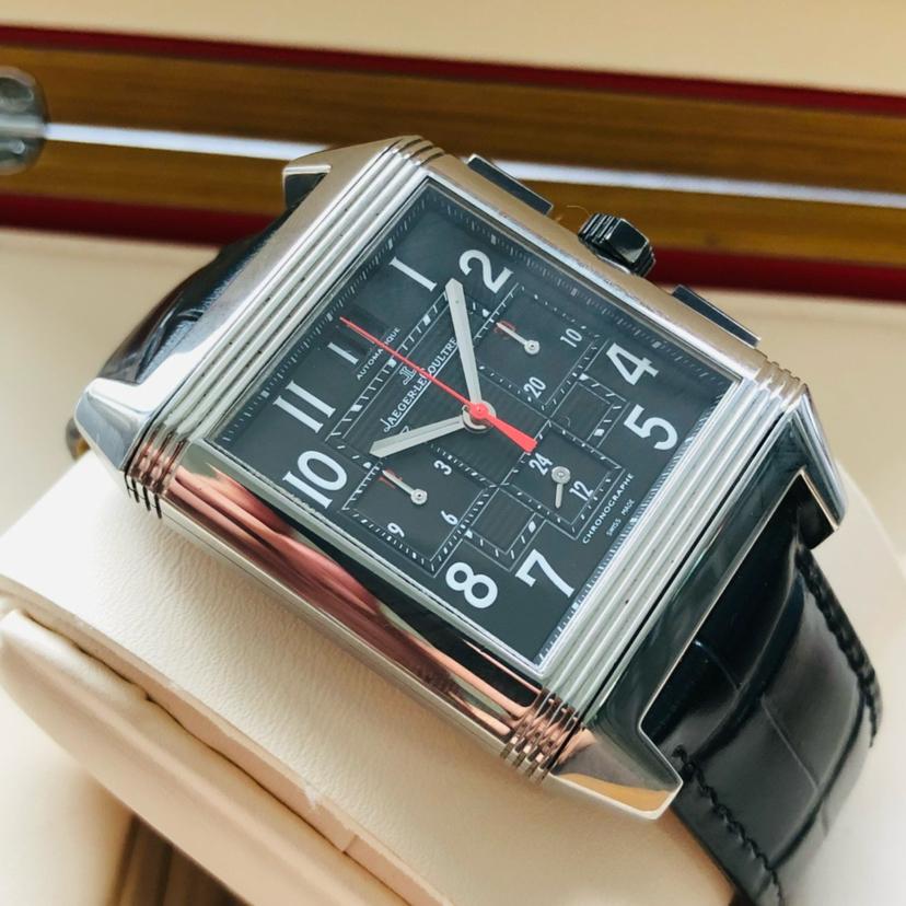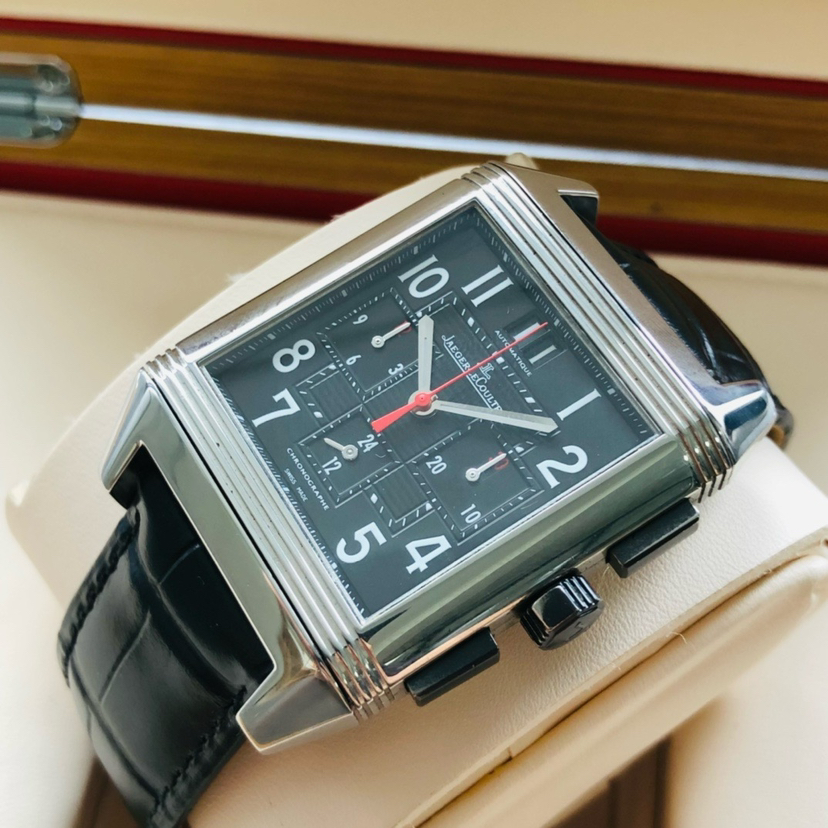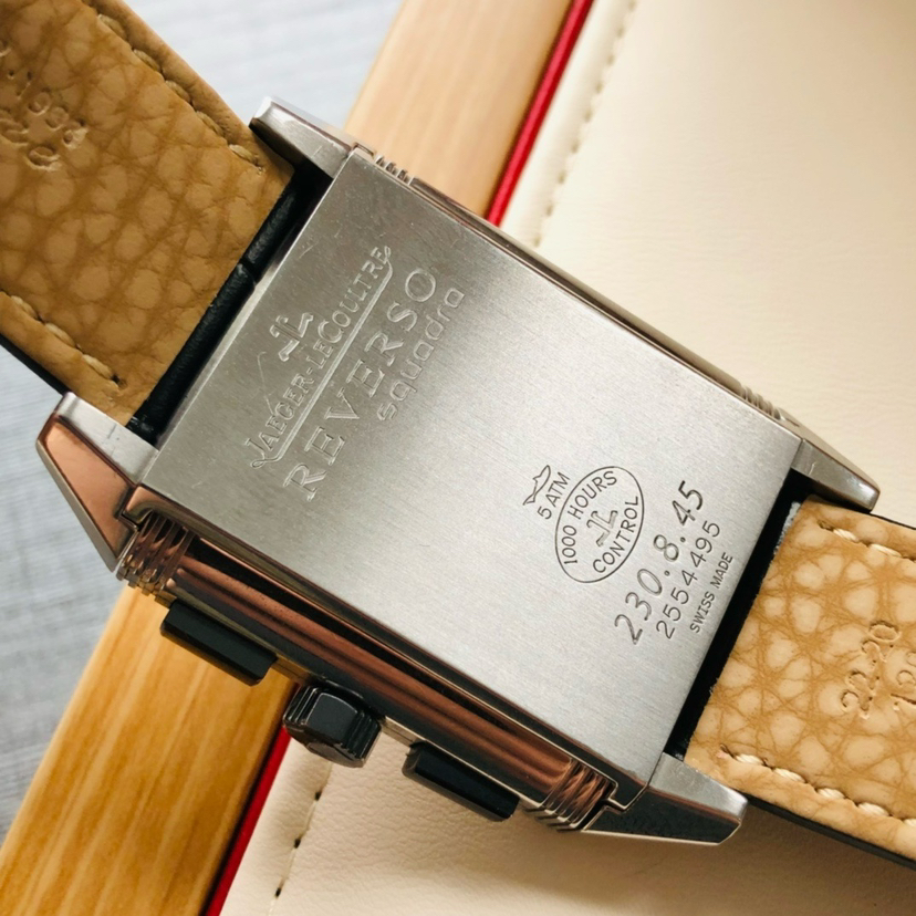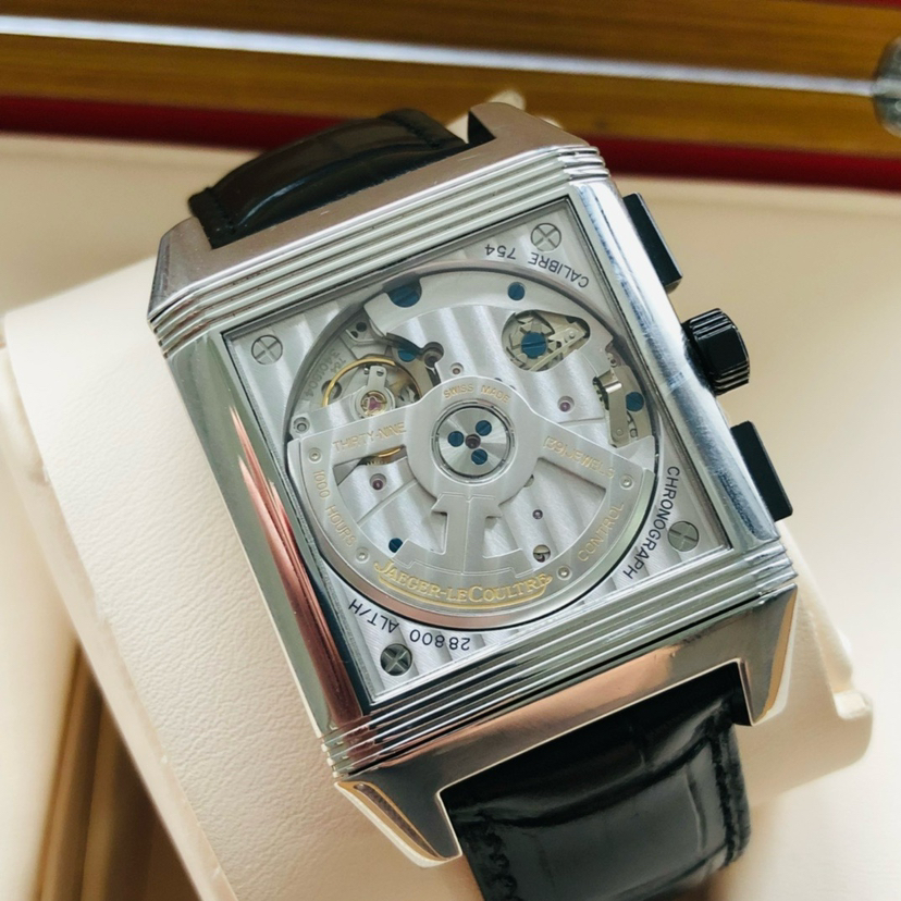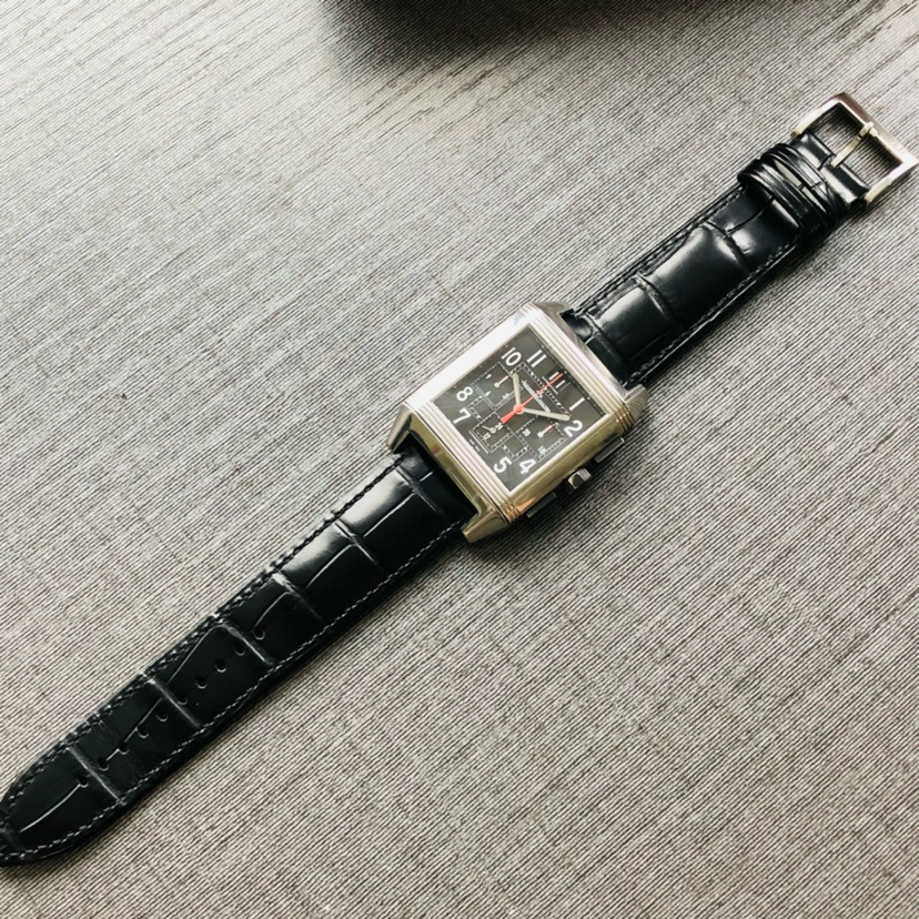 Jaeger LeCoultre 翻转腕表,自动机械男士腕表,精钢表壳,表扣,背面透底机芯,直径50.5x34.9mm,单表无附件
