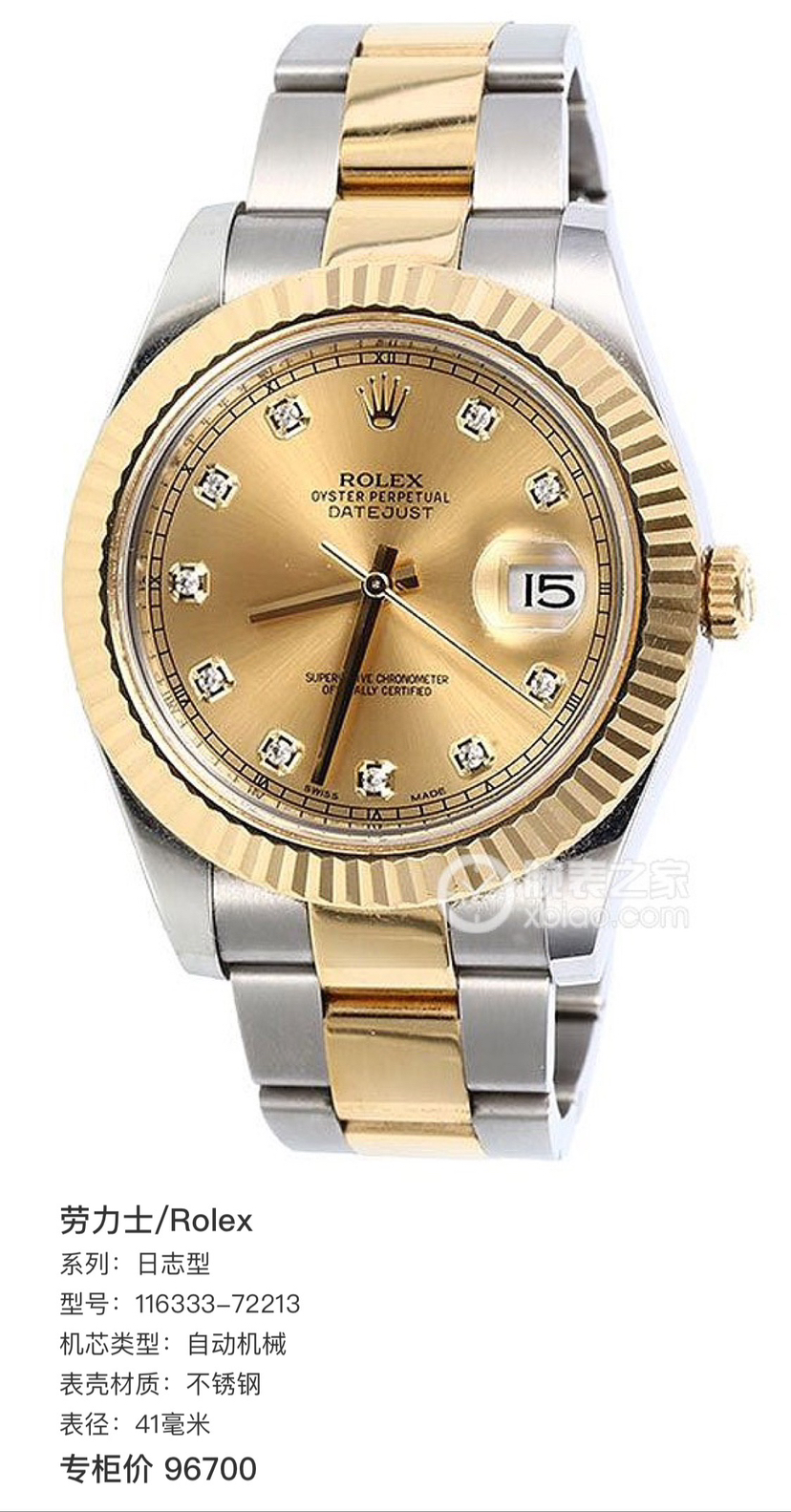 劳力士/Rolex 日志型 116333-72213 自动机械 不锈钢 41毫米 专柜价96700