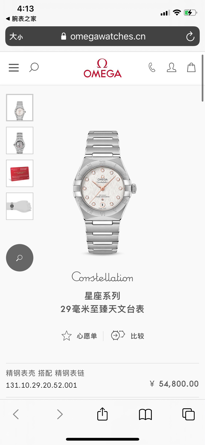欧米茄/Omega 星座系列 131.10.29.20.52.001 自动上链 精钢 29 附件:极品全套 专柜价61000