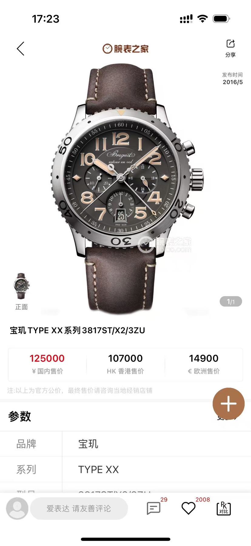 宝玑/Breguet TYPE XX - XXI - XXII 3817ST/X2/3ZU 自动机械 精钢 42毫米 专柜价112300 19年大全套,现货好价!