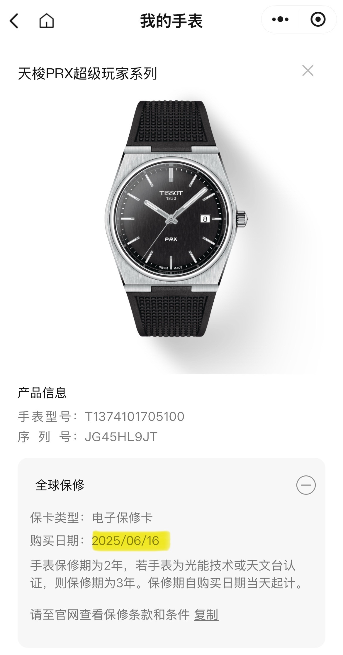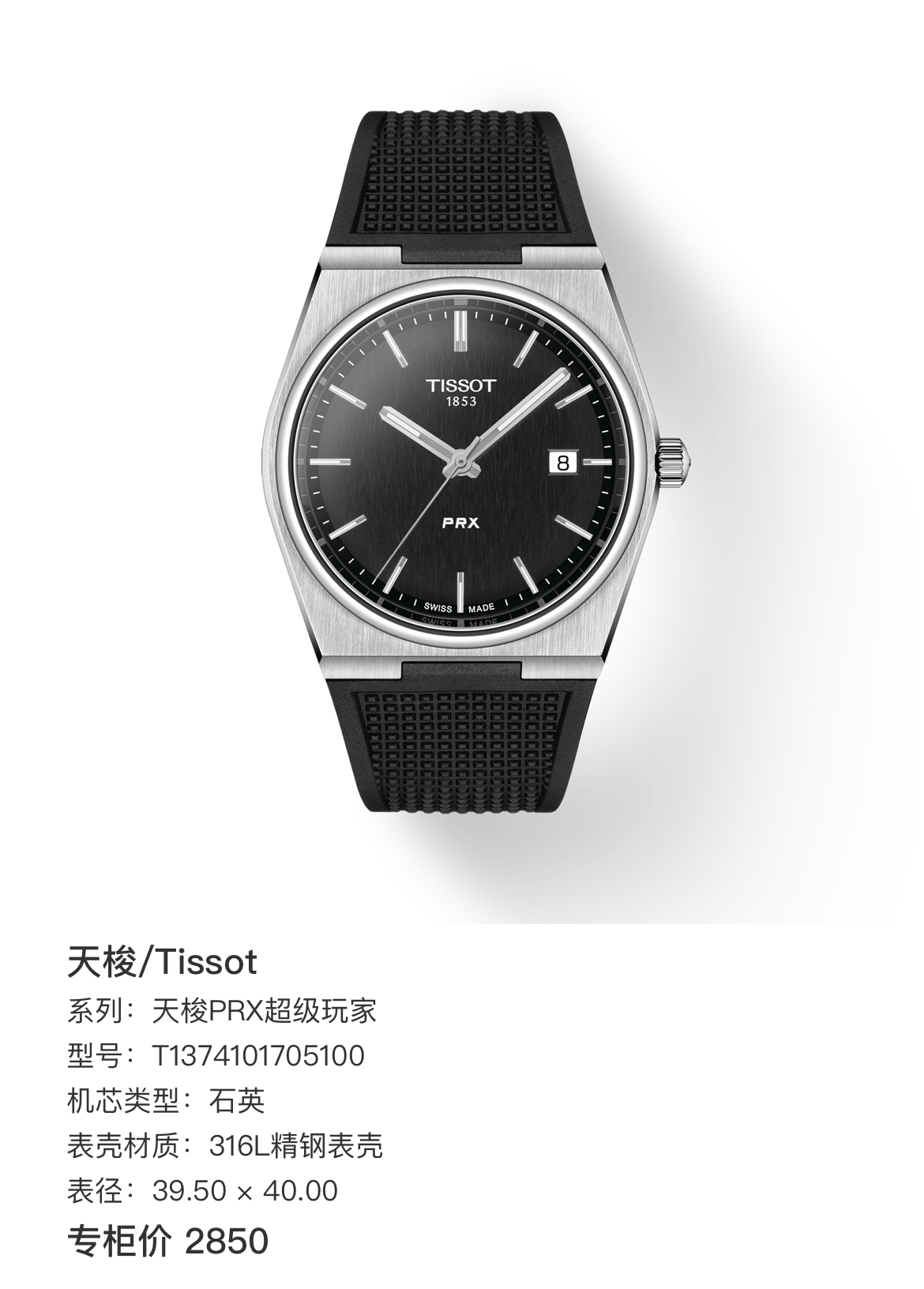 25年6月全套 天梭 PRX超级玩家 T1374101705100 石英 316L精钢表壳 39.5x40mm表径 专柜价2850 现好价。