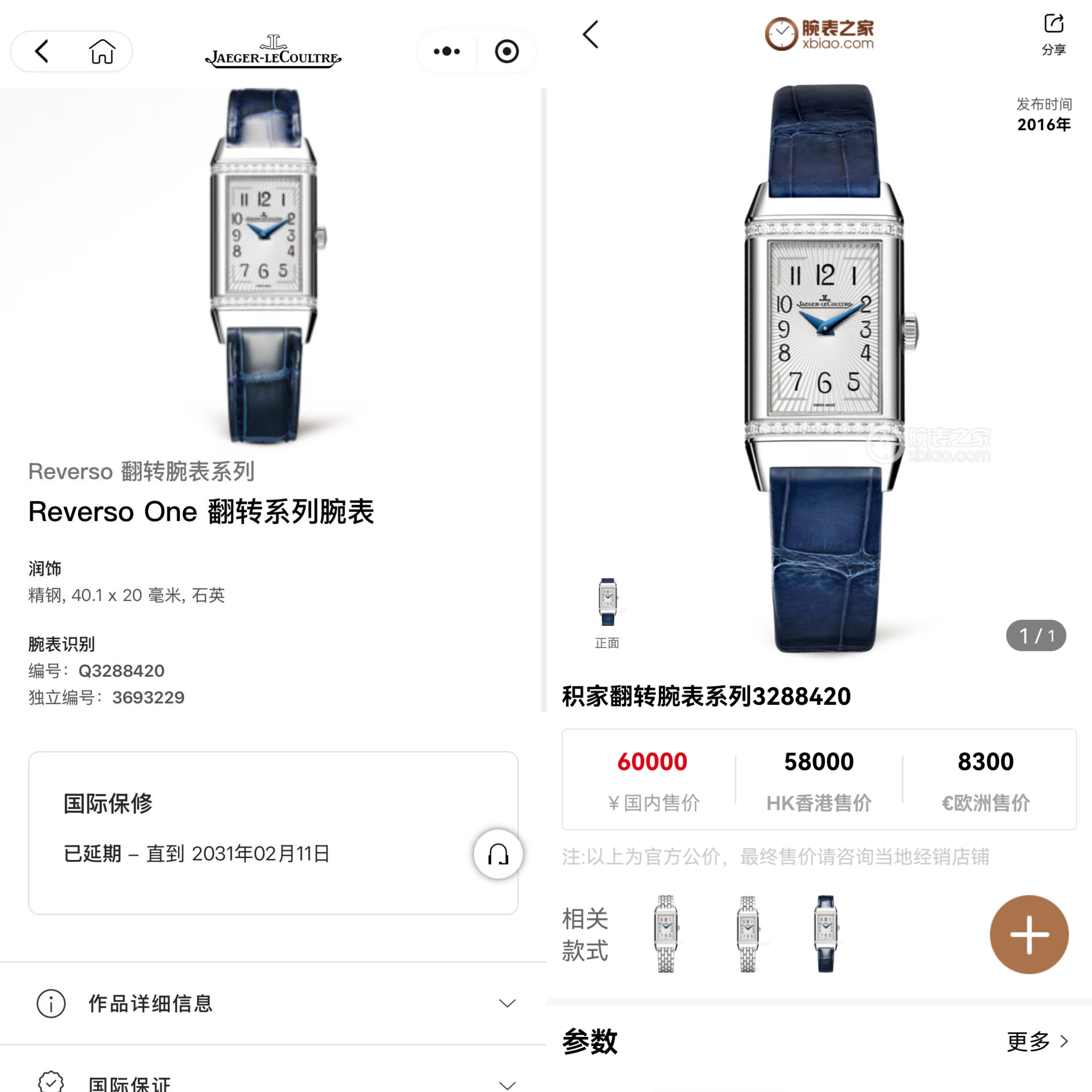 积家翻转系列Q3288420女士石英腕表,23年全套 专柜八年质保,积家的大热门款,明星同款专柜原价60000~