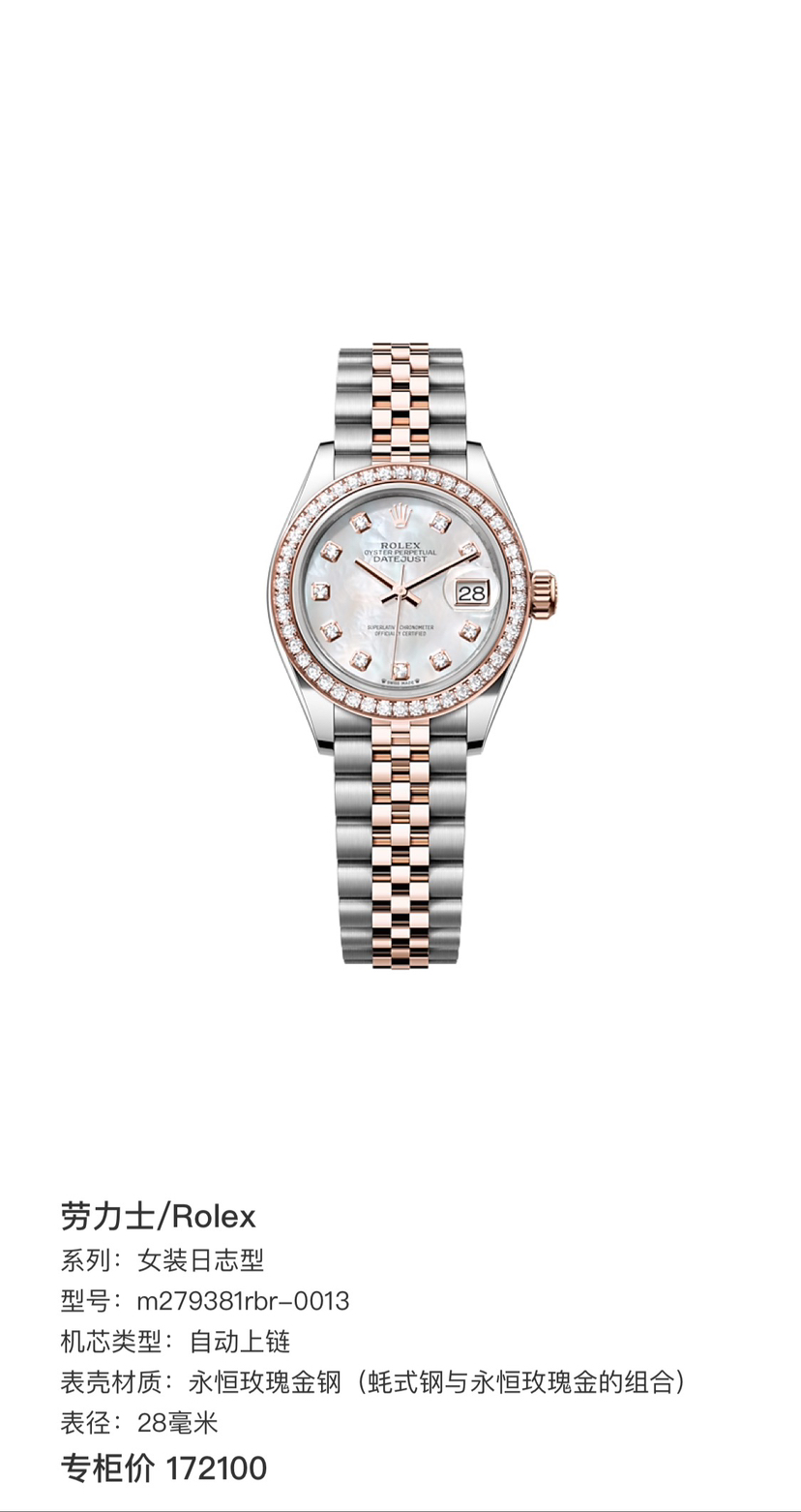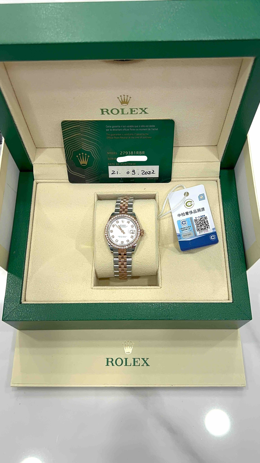 22年全新全套,劳力士/Rolex 女装日志型 m279381rbr-0013 自动上链 永恒玫瑰金钢(蚝式钢与永恒玫瑰金的组合) 28毫米 专柜价172100