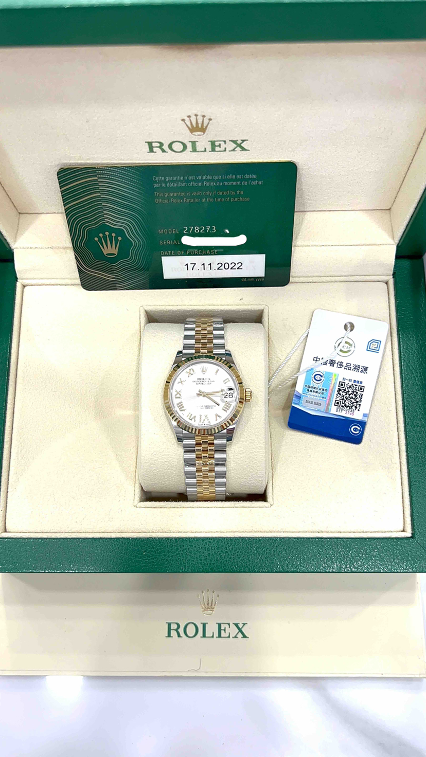 22年全新全套劳力士/Rolex 日志型 m278273-0004 自动上链 黄金钢(蚝式钢与黄金的组合) 31毫米 专柜价115300
