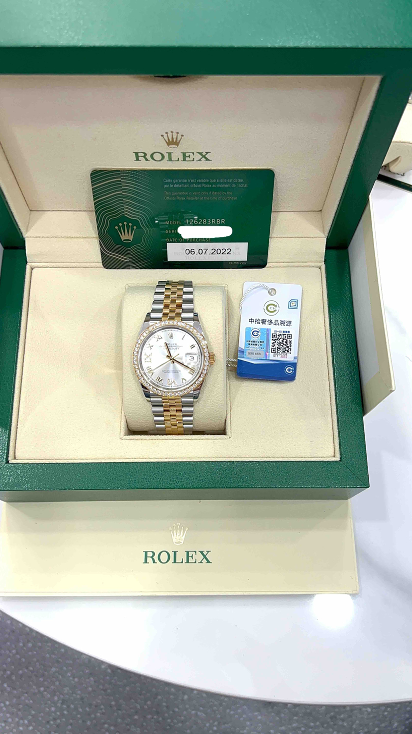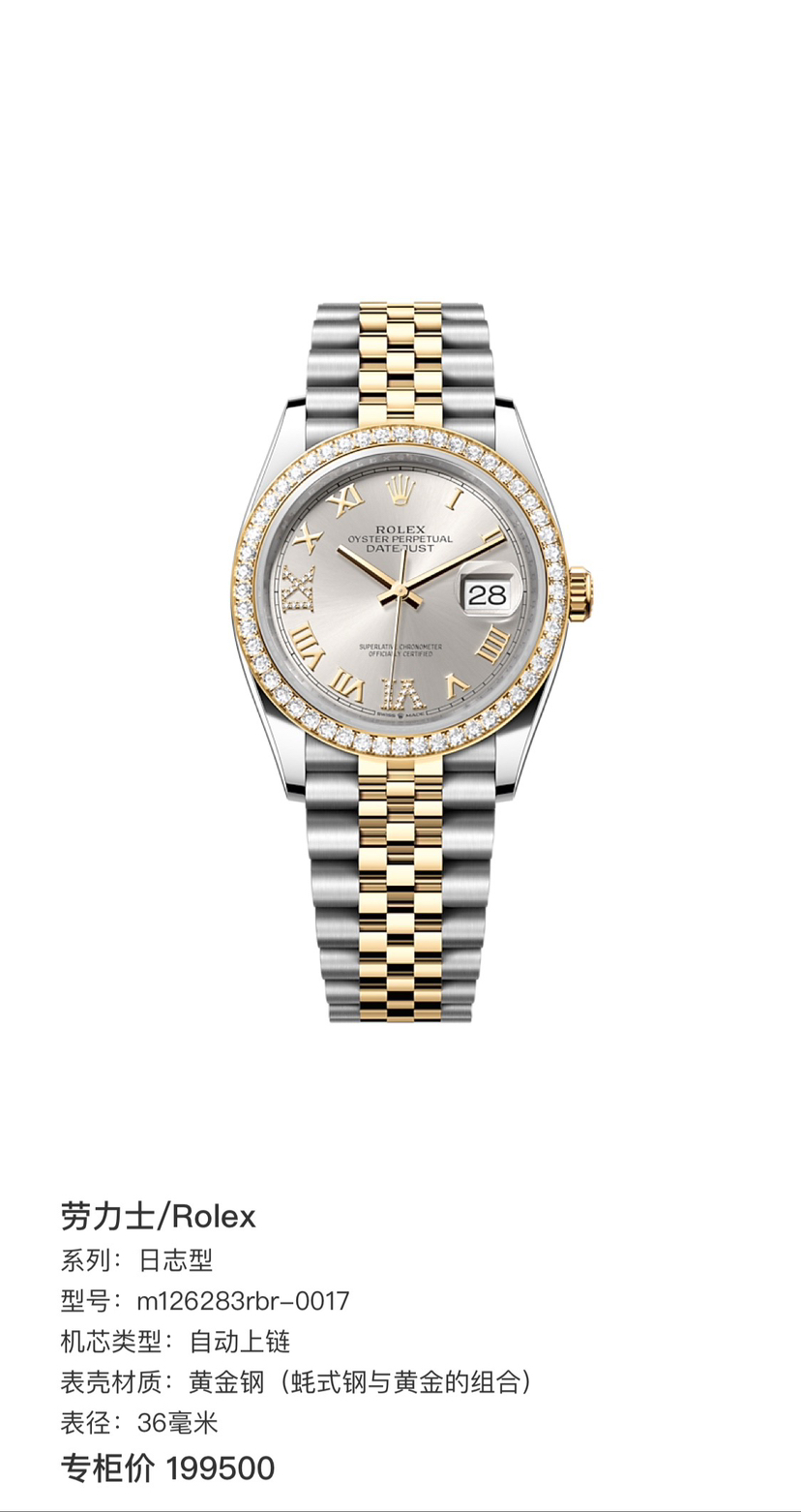 22年全新全套,劳力士/Rolex 日志型 m126283-0017 自动上链 黄金钢(蚝式钢与黄金的组合) 36毫米 专柜价199500