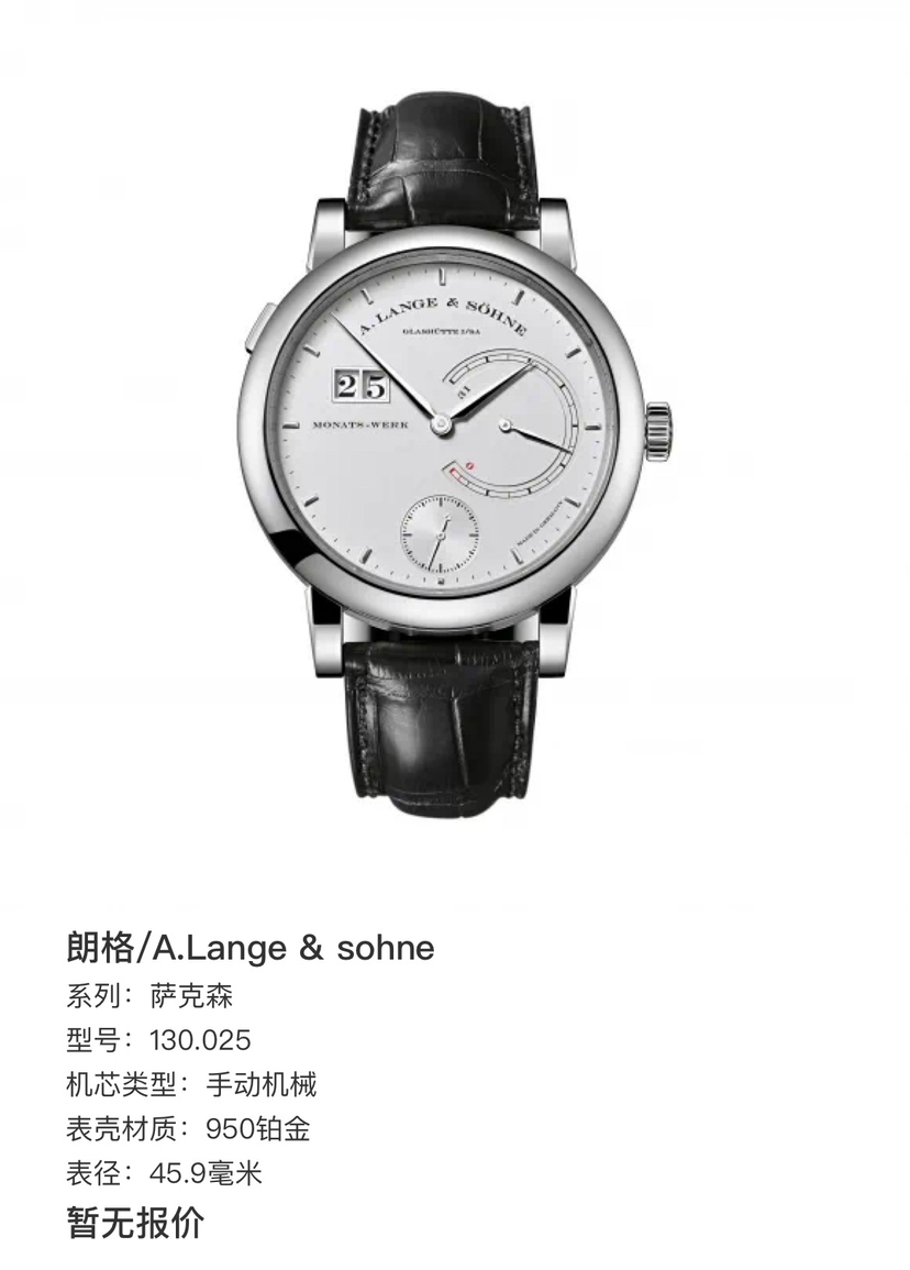 单表朗格 Lange 130.025 罕有PT950铂金堪称朗格巅峰之作 也是全球首枚具备31天动力储存及专利恆定动力擒纵系统的机械腕表 购入价135万