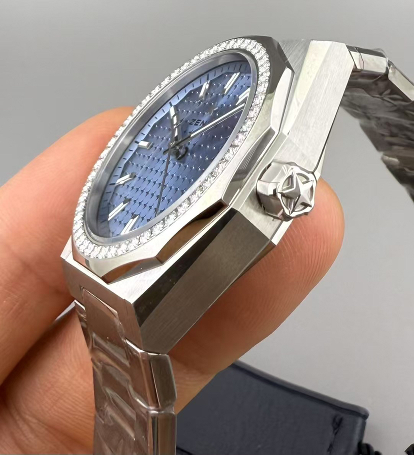 真力时-巅峰系列:16.9400.670,36MM表径精钢表壳和表链,自动机械机芯,原装镶嵌钻石,国行未使用全套附件齐全,公价10.34万,特价