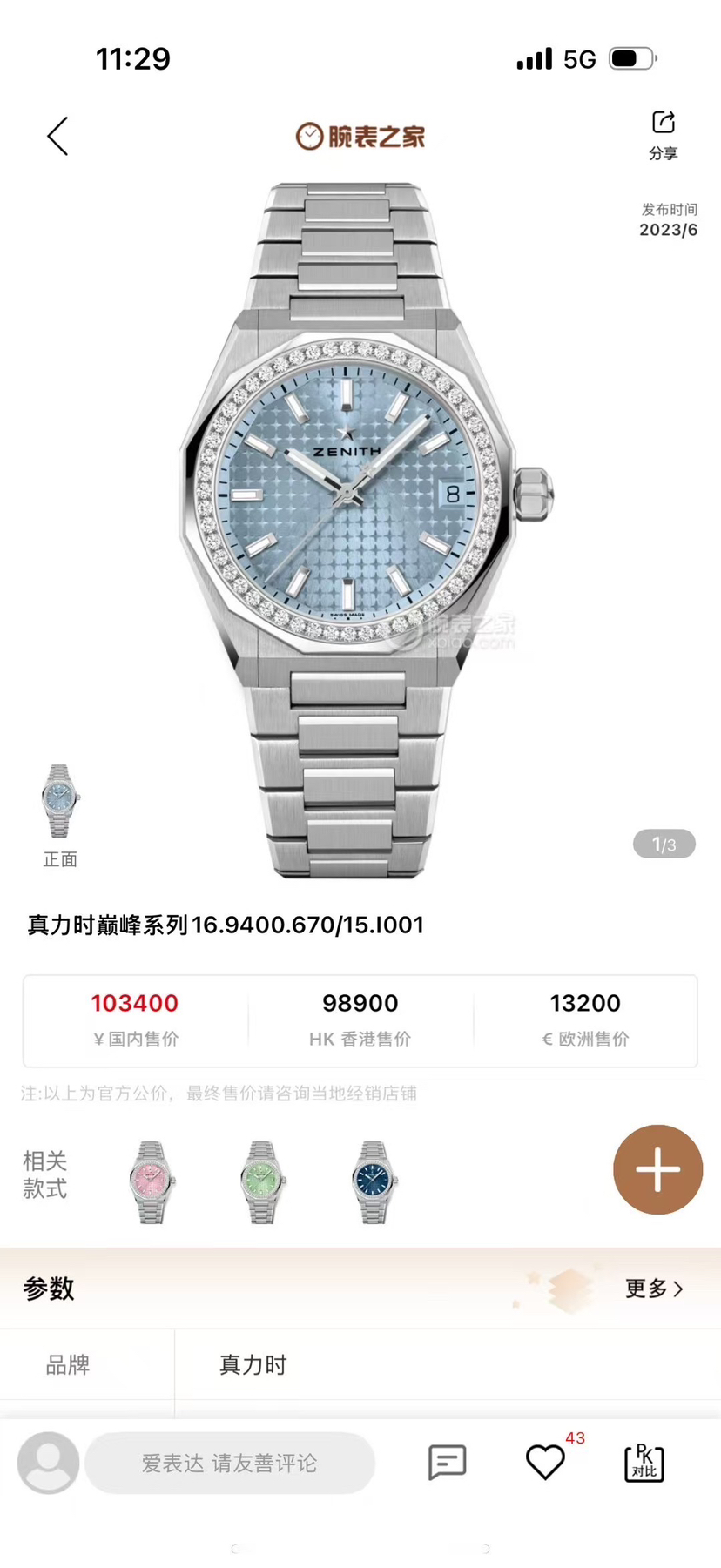 真力时巅峰Defy16.9400.670机械中性