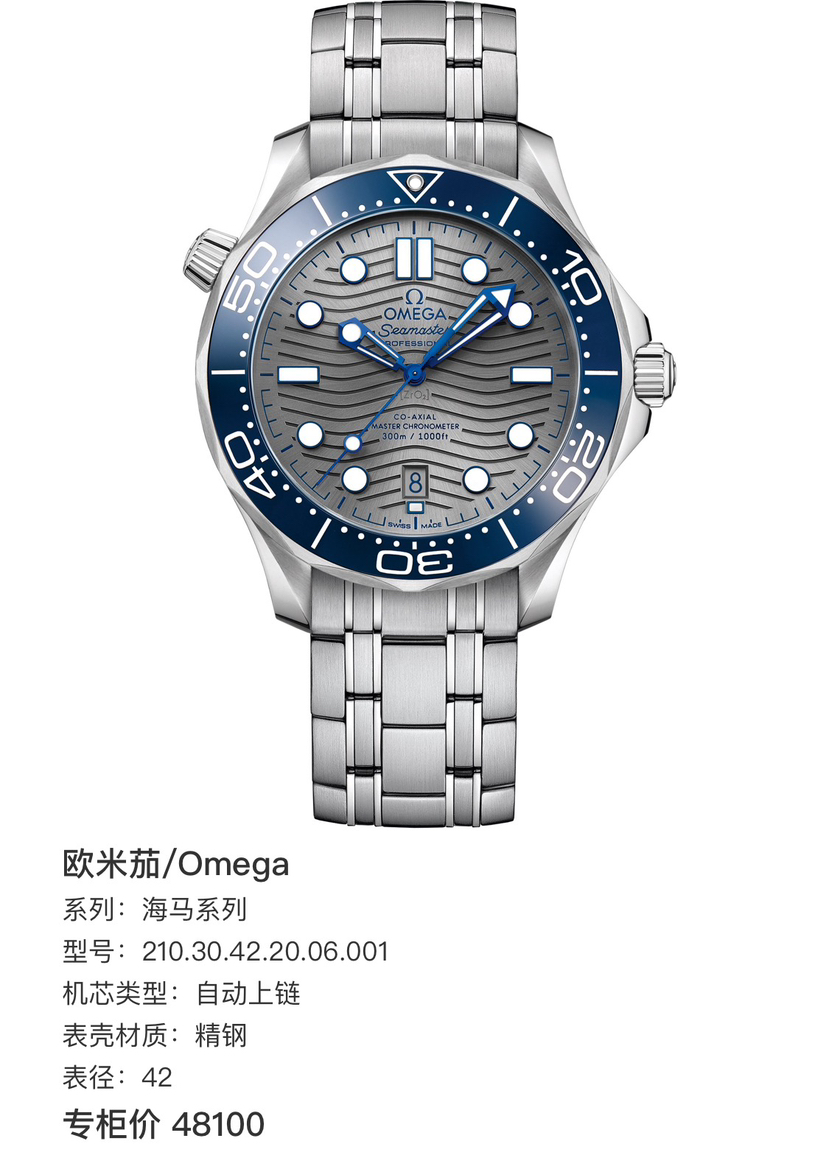 欧米茄海马210.30.42.20.06.001机械男性