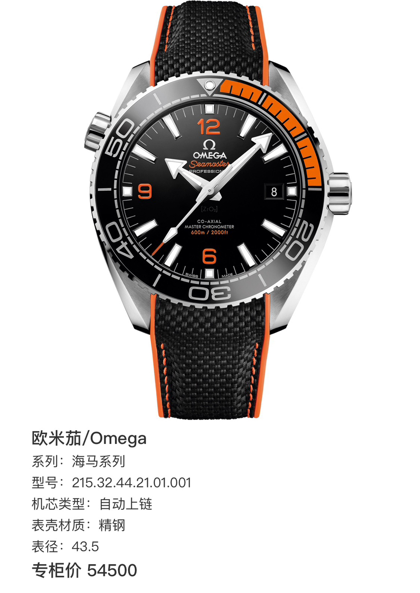 全新全套25年OMEGA欧米茄海马系列21532442101001,海洋宇宙自动机械机芯 防磁防水日历多功能 男表 瑞表 43.5mm 黑色表盘 精钢表壳 橡胶表带