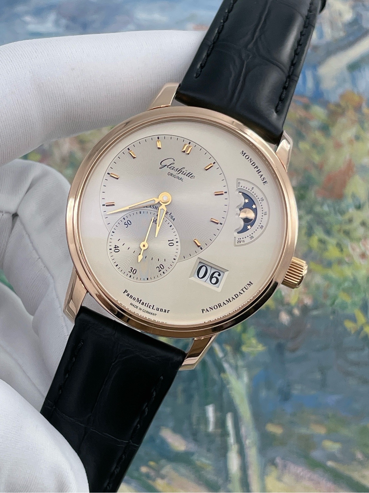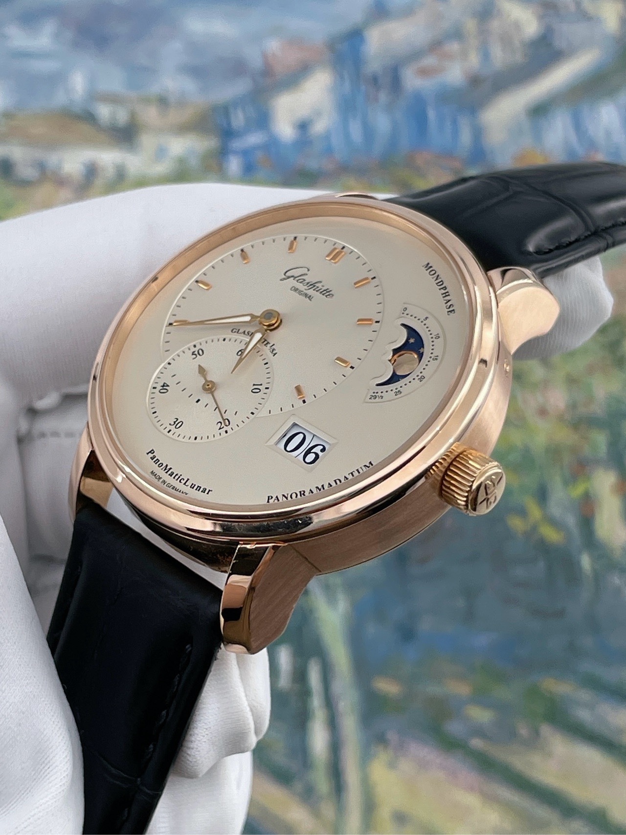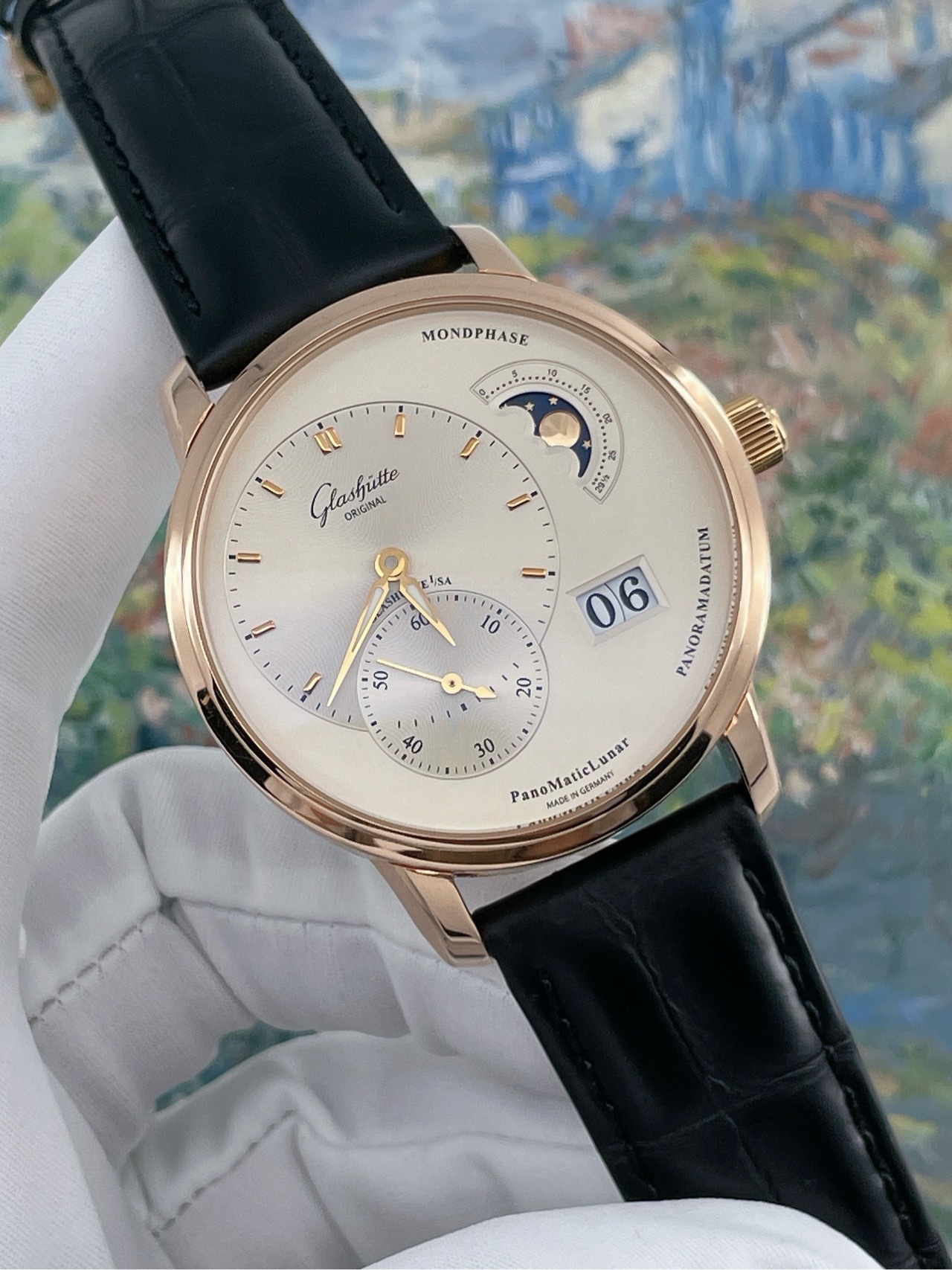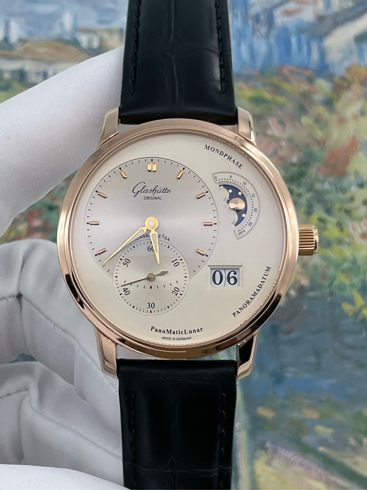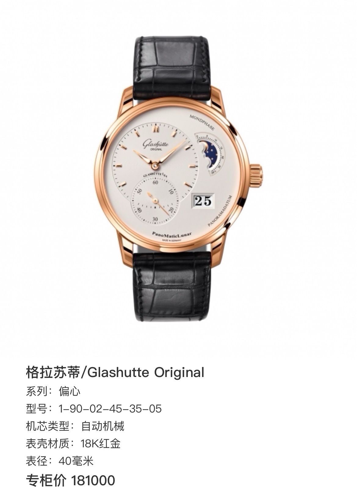 格拉苏蒂 偏心月相 1-90-02-45-35-05 自动机械 18K红金 40mm表径 专柜价181000 单表好价。