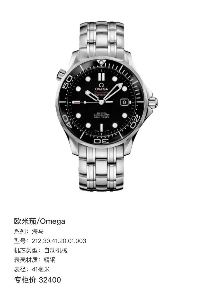 欧米茄海马 海马300米 212.30.41.20.01.003机械男性