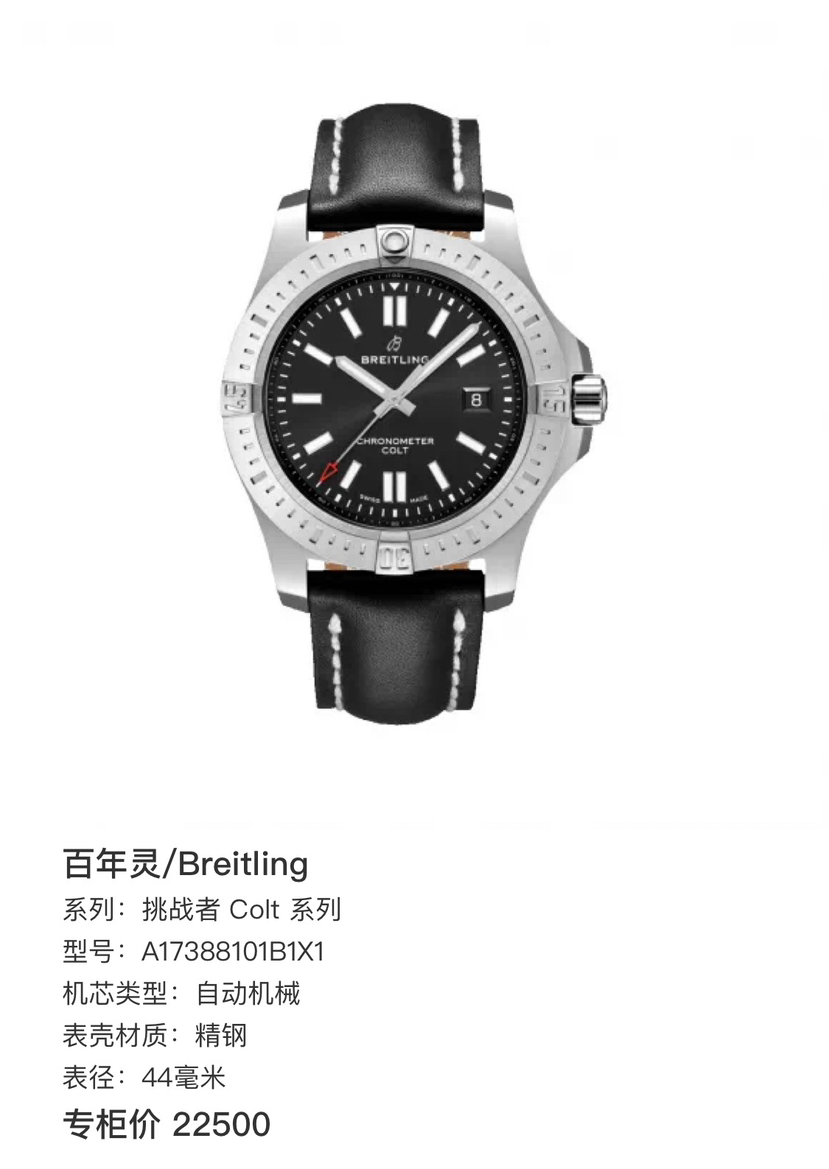 百年灵/Breitling 挑战者 Colt 系列 A17388101B1X1 自动机械 精钢 44毫米 专柜价22500