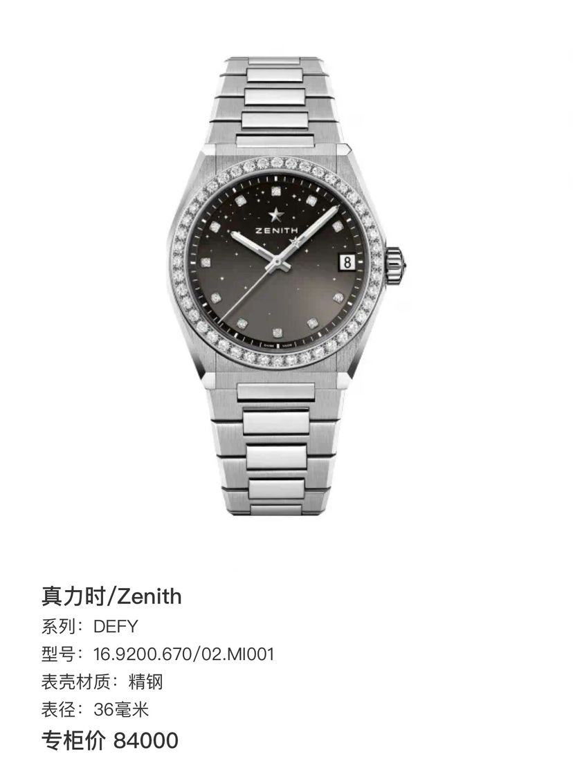 真力时/Zenith DEFY 16.9200.670/02.MI001 精钢 36毫米 专柜价84000 近期卡未使用全套