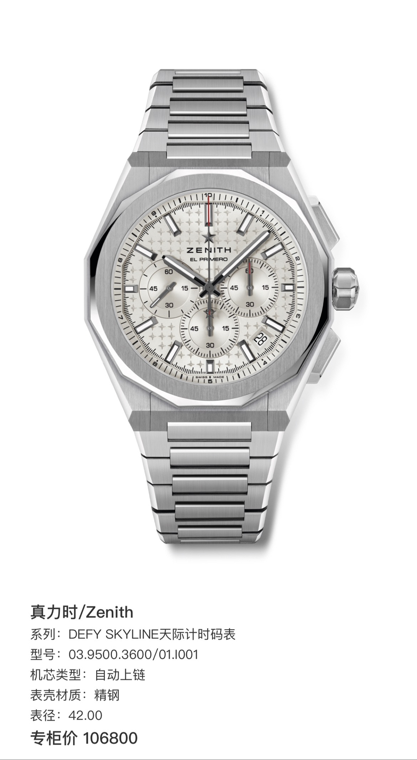 新收 真力时天际计时码表03.9500.3600/01.I001 自动上链 精钢 42.00 专柜价106800 25年全新全套好价