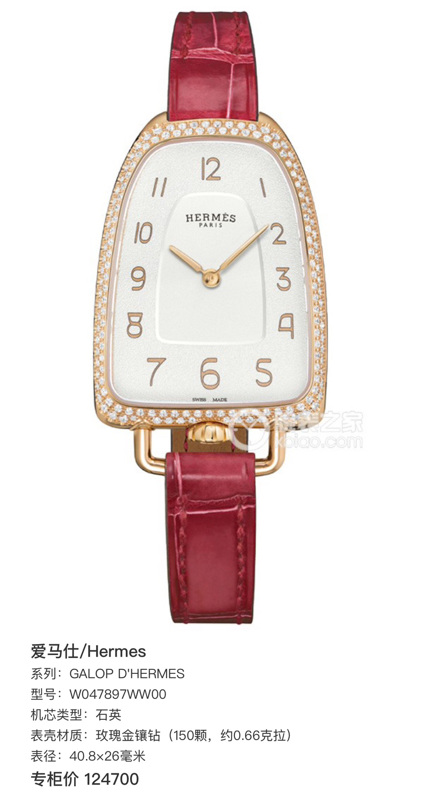 爱马仕/Hermes GALOP D'HERMES W047897WW00 石英 玫瑰金镶钻 40.8×26毫米 专柜价124700 单表好价