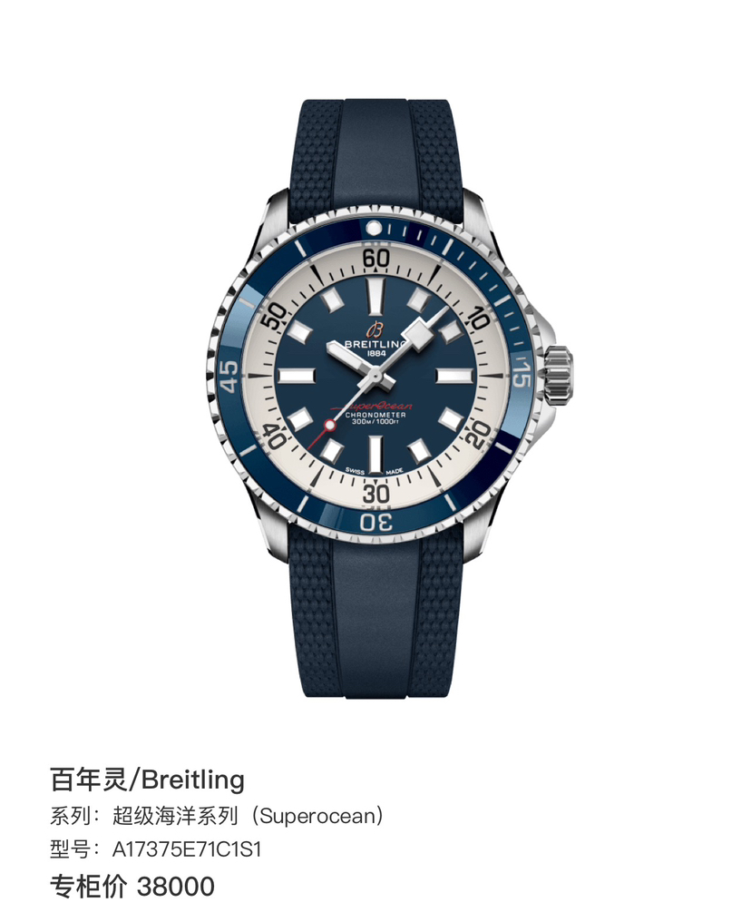 百年灵/Breitling 超级海洋系列(Superocean) A17375E71C1S1 自动机械 42毫米 专柜价38000 2023年全套 已延保至2028年。