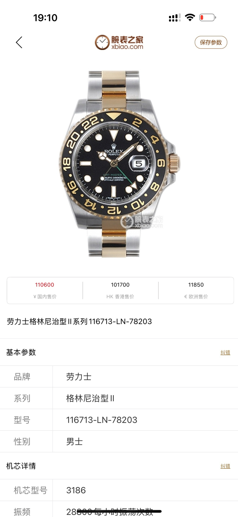 劳力士格林尼治型II116713机械男性