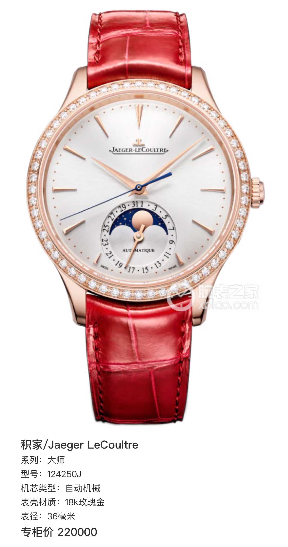 积家 超薄大师系列腕表 Q1242501 自动上链 18K玫瑰金 36mm表径 23年表、盒子,保卡丢失 专柜价220000 现好价。