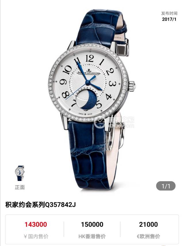 【未使用】积家约会系列Q357842J钻圈约会,经典月相,34mm表径,未使用品全套,公价143000,现货好价