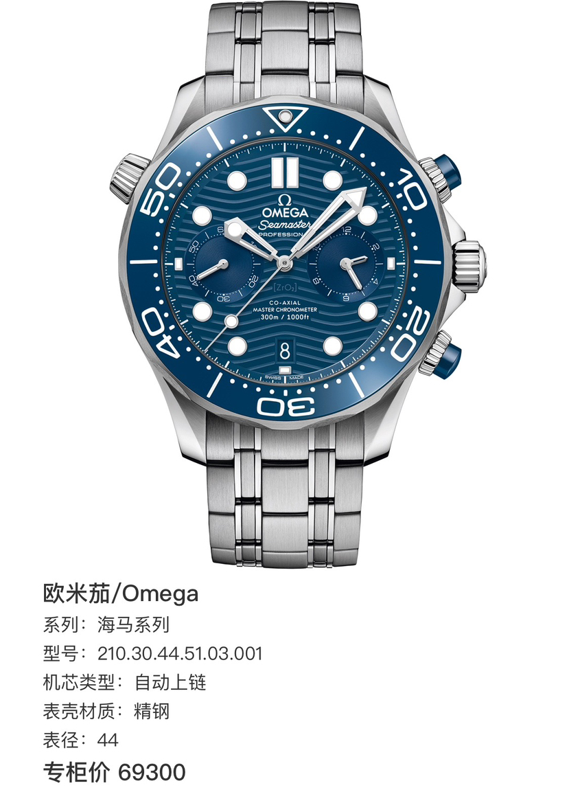 欧米茄/Omega 海马系列 210.30.44.51.03.001 自动上链 精钢 44 专柜价69300