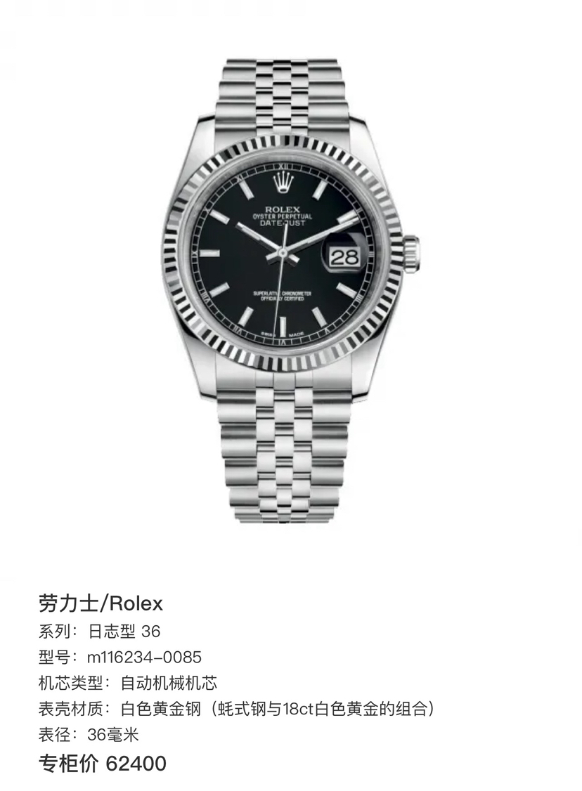 劳力士/Rolex 日志型 36 m116234-0085 闲置未使用 带膜库存品 未使用全套
