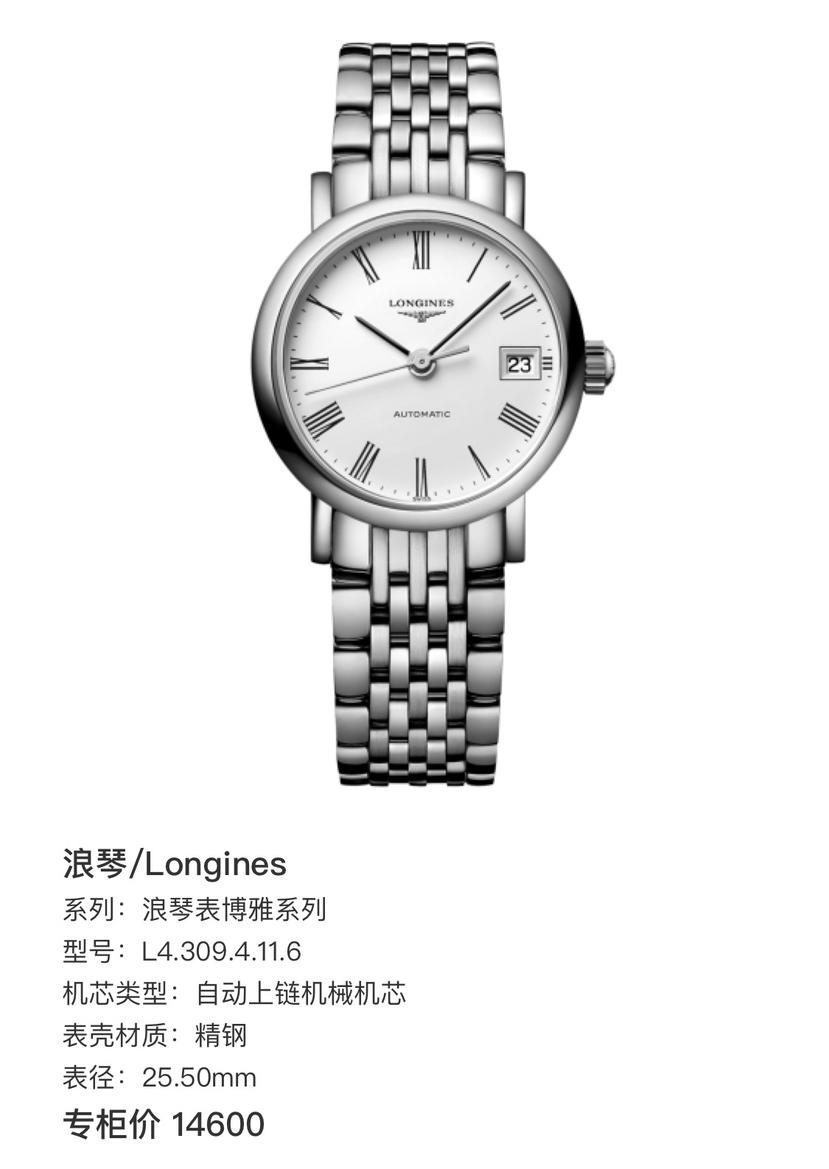 全新卡浪琴/Longines 浪琴表博雅系列 L4.309.4.11.6 自动上链机械机芯 精钢 25.50mm 专柜价14600 全新全套