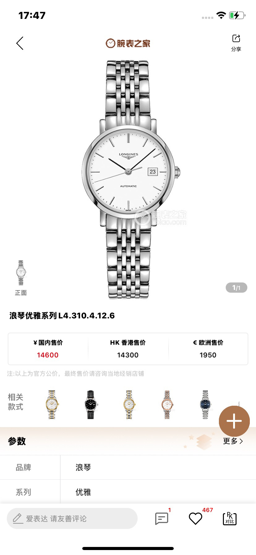 全新浪琴优雅系列L43104126 表径29 自动机械 全新全套
