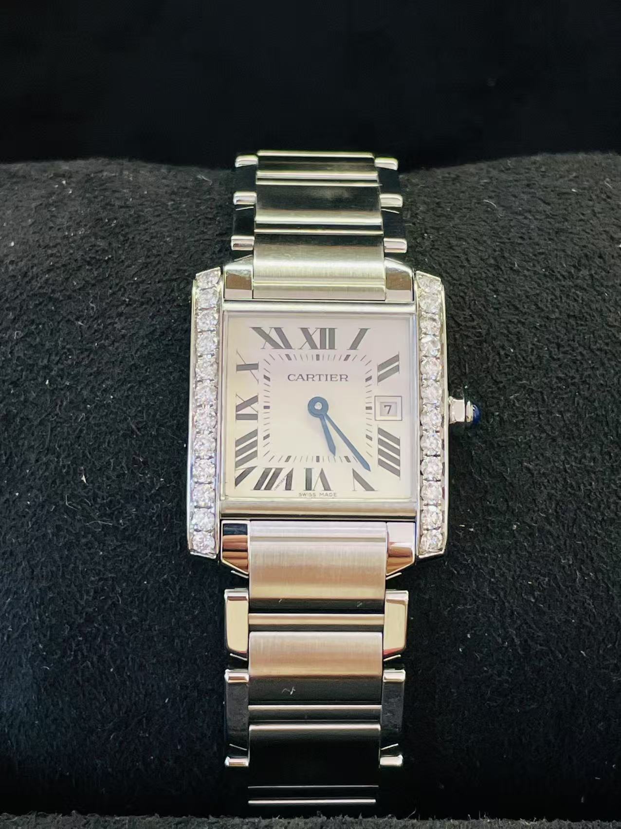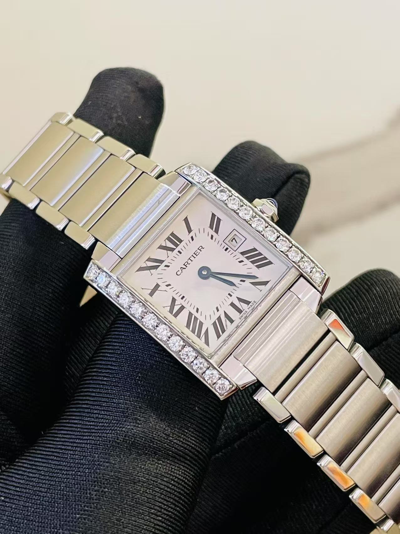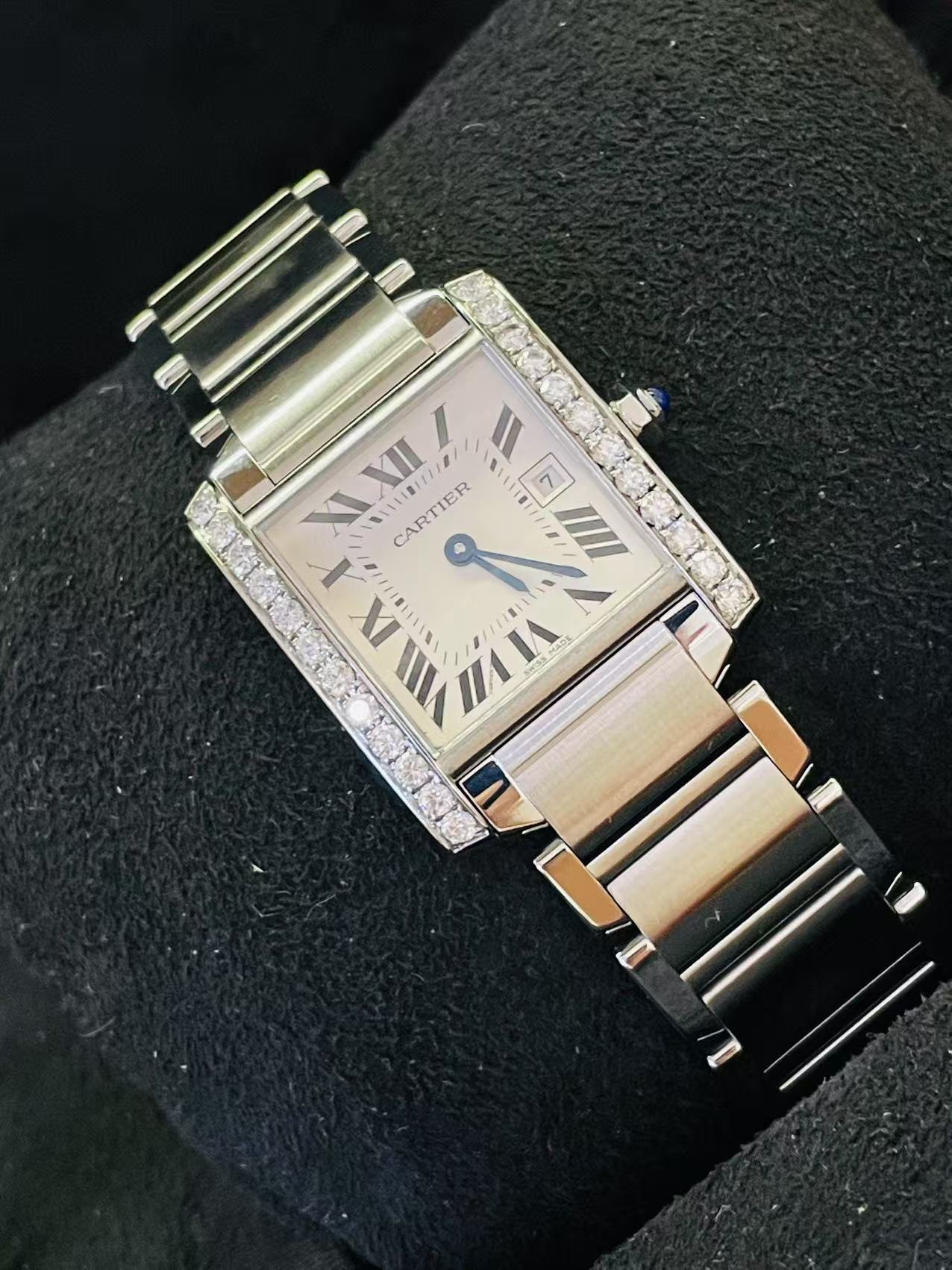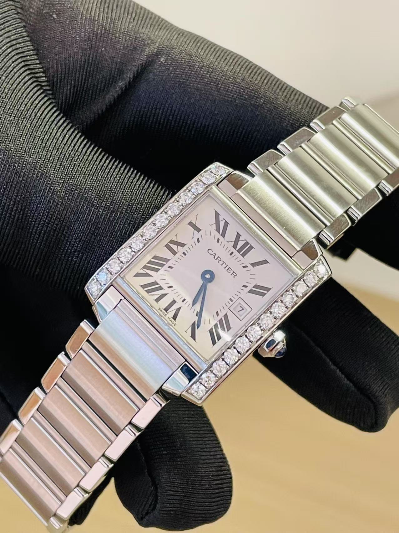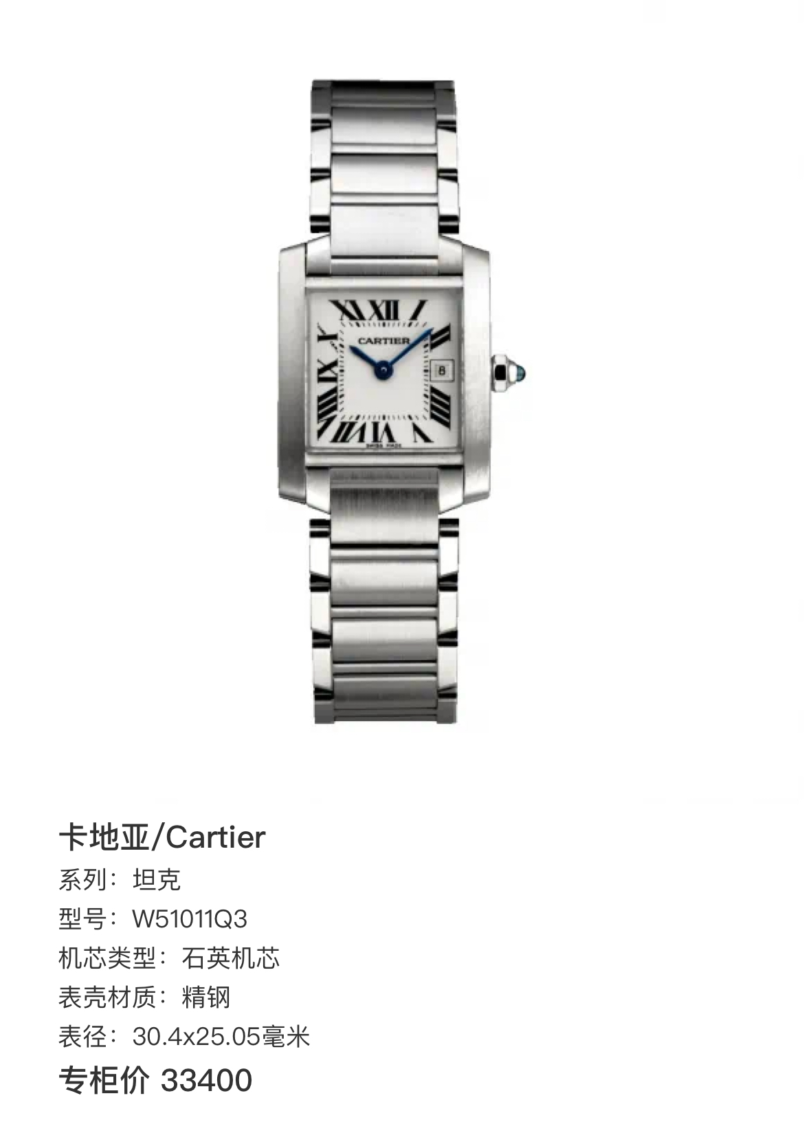 卡地亚 坦克 W51011Q3 后镶钻 石英机芯 精钢 30.4x25.05mm表径 专柜价33400 单表好价。