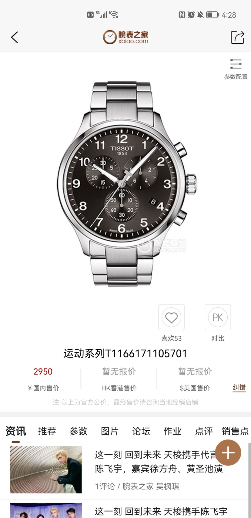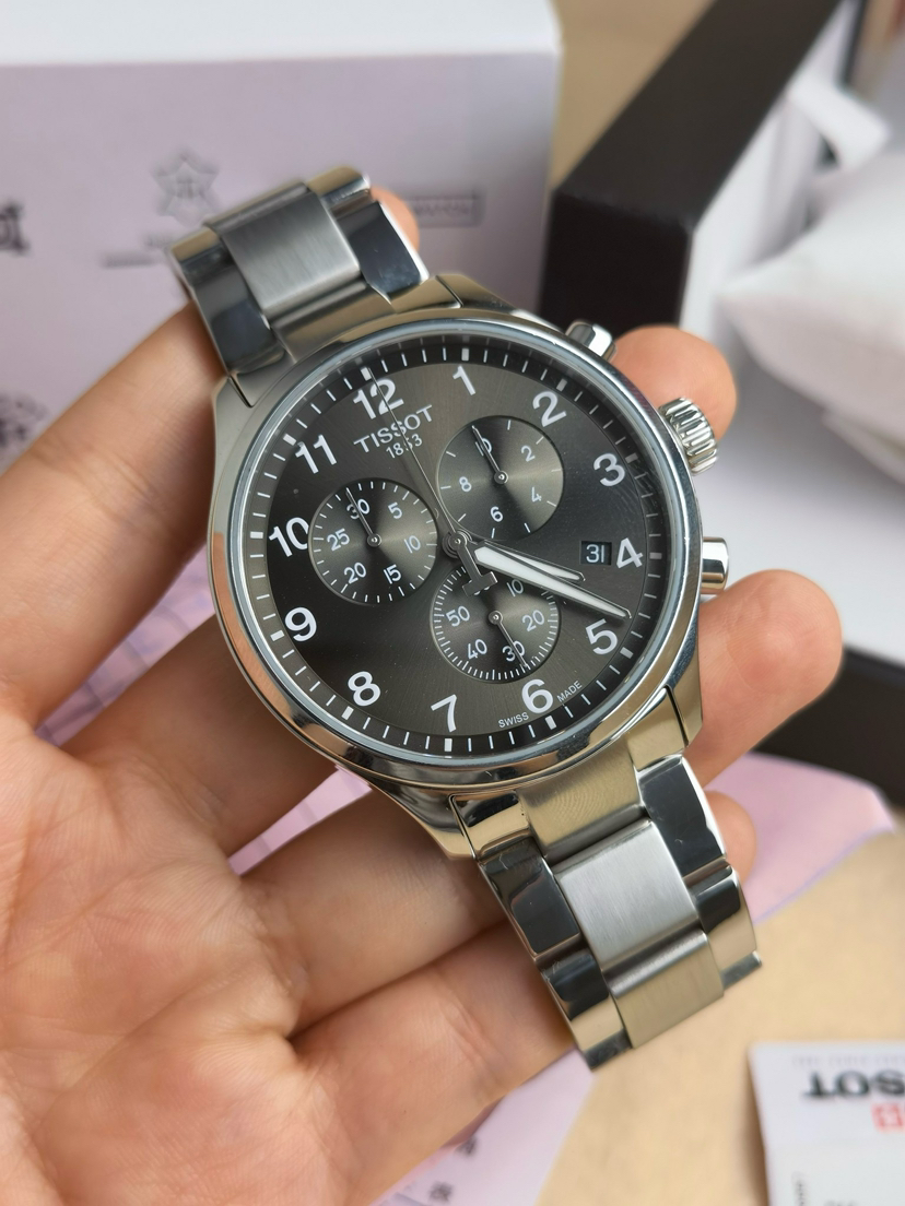 天梭运动系列T1166171105701石英男士腕表 表径42mm,搭配三眼计时表盘,高级灰色盘面,时尚又不失大气,专柜原价2950,现好价