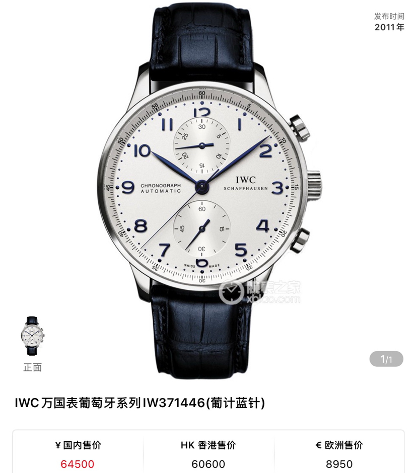 万国葡萄牙 葡计蓝针 IW371446机械男性