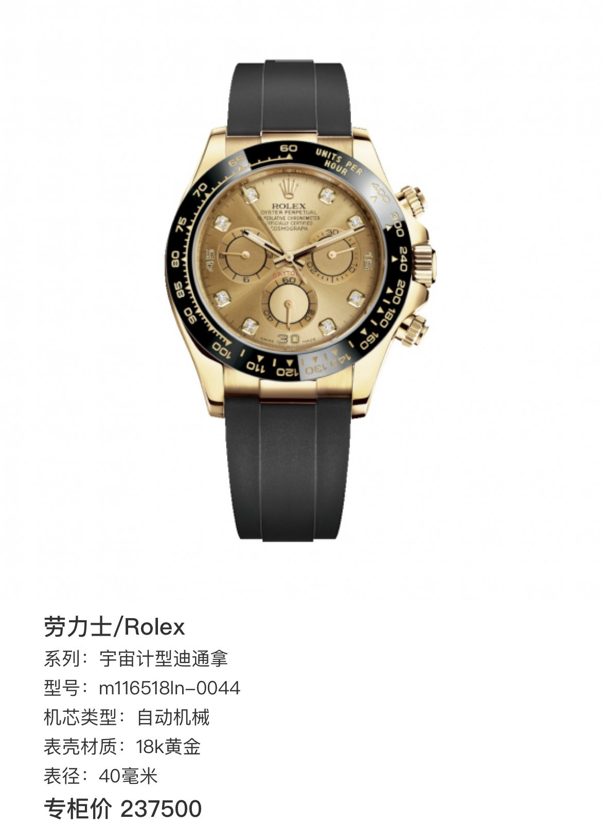 劳力士 宇宙计型迪通拿 m116518ln-0044 自动机械 18k黄金 40mm表径 专柜价237500 单表好价。