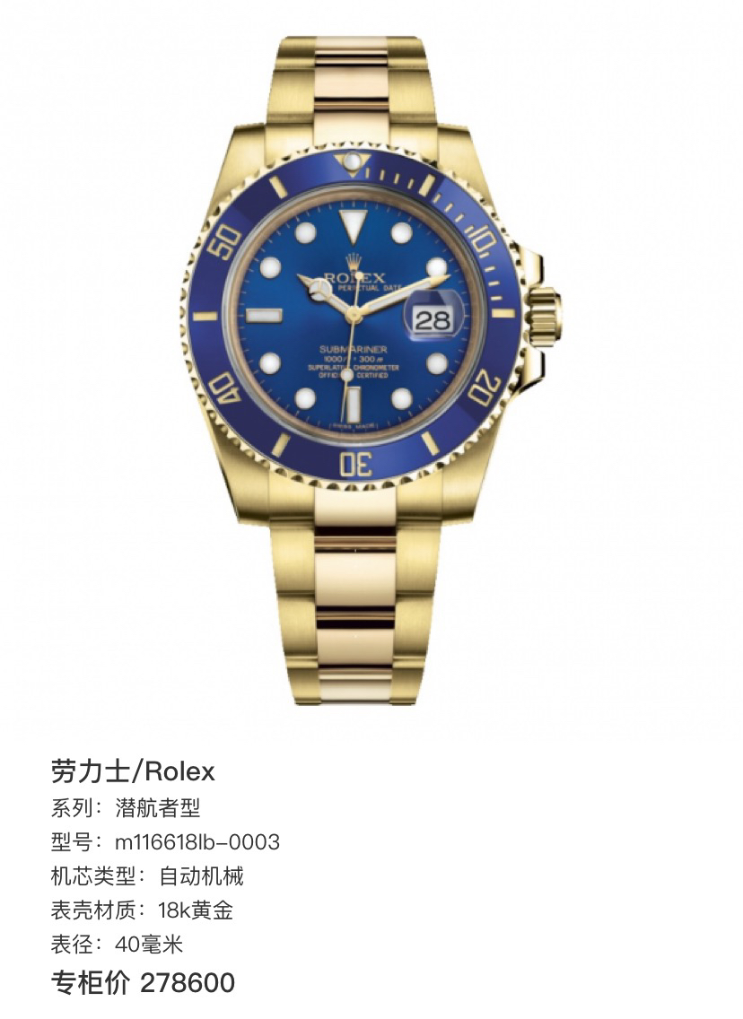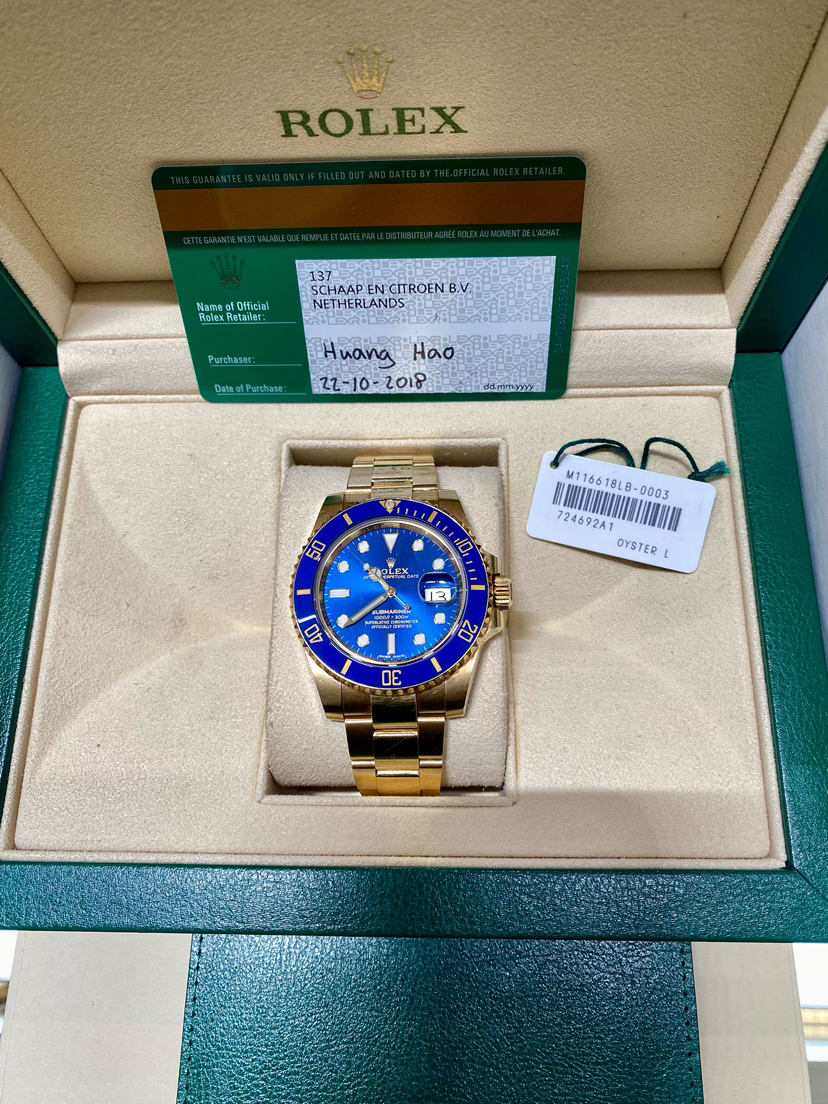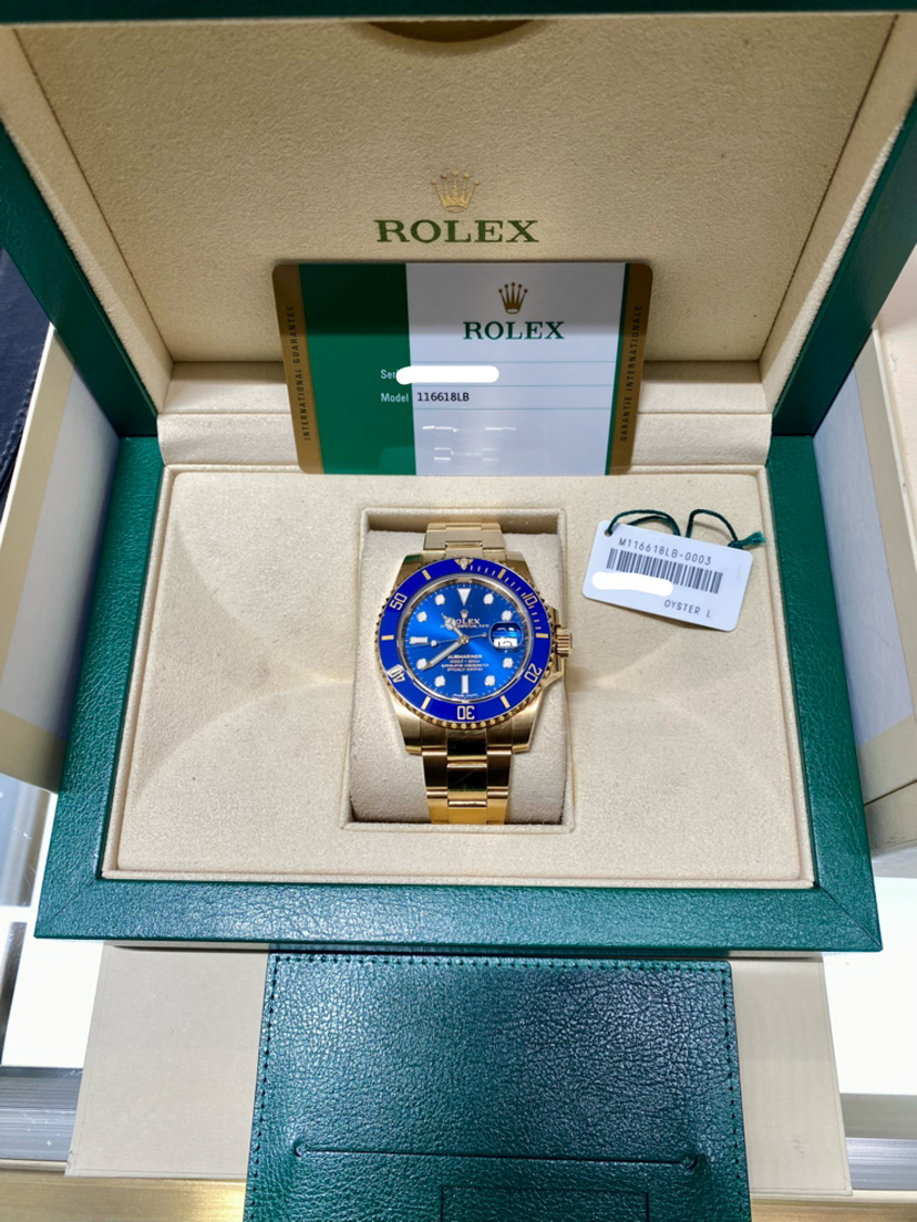 18年二手全套 劳力士/Rolex 潜航者型 m116618lb-0003 自动机械 18k黄金 40毫米 专柜价278600,