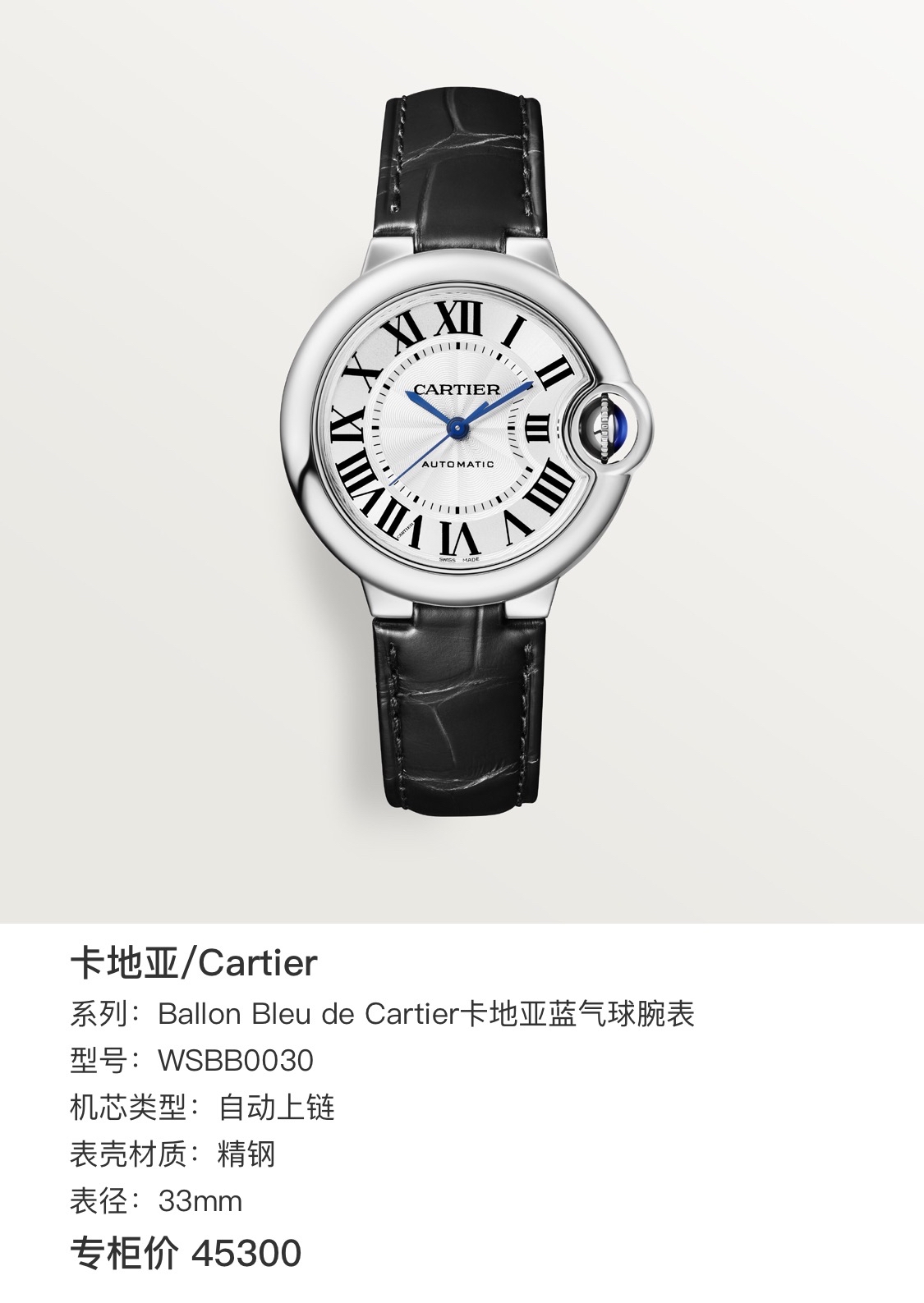 卡地亚蓝气球BALLON BLANCWSBB0030机械女性