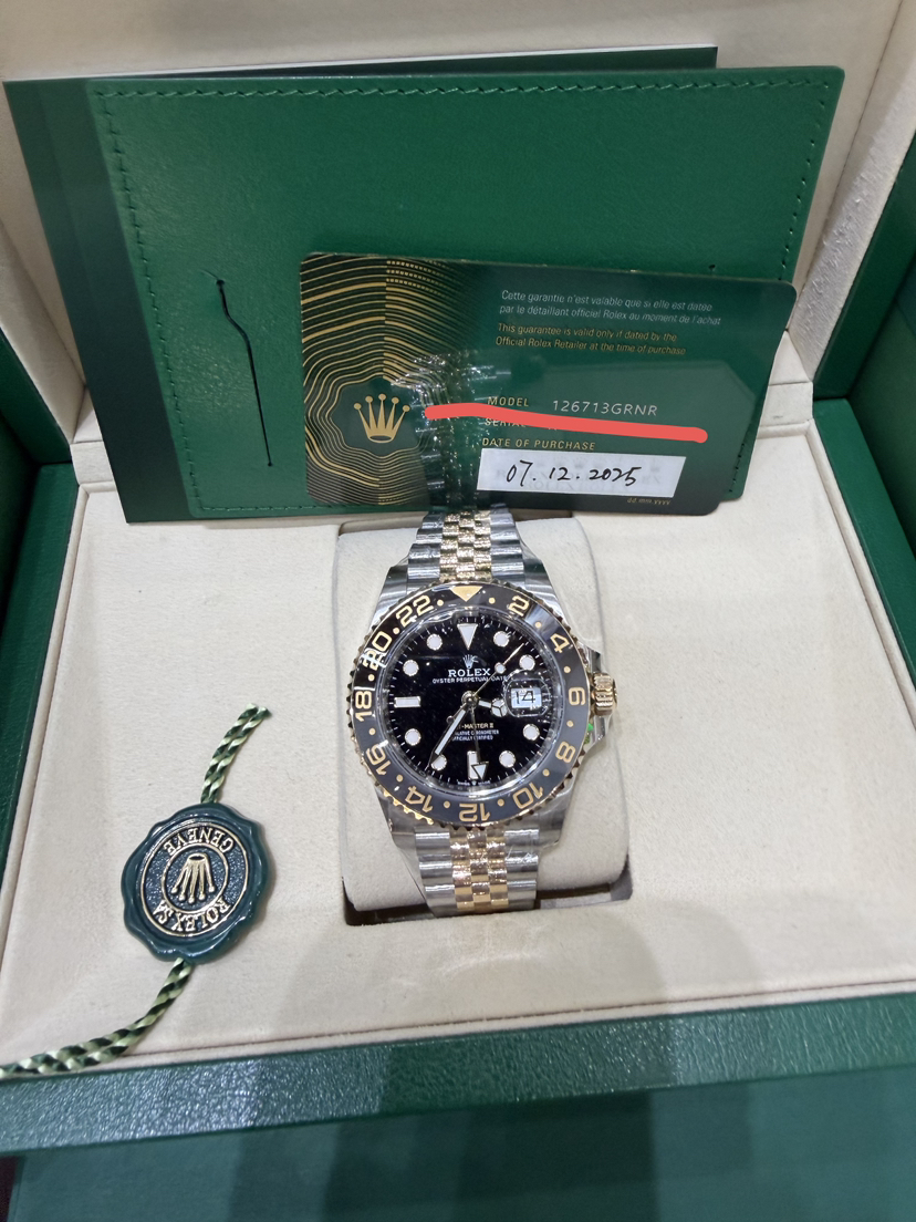 【全新】12月卡劳力士/Rolex 格林尼治型 II m126713grnr-0001 间金皮蛋圈 间金GMT 专柜价 150500。