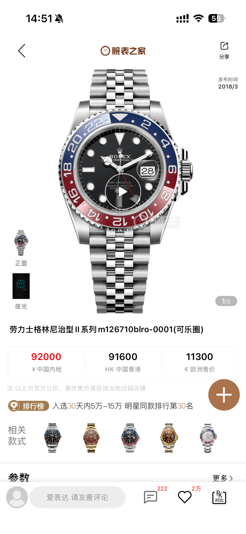 劳力士格林尼治型II 皮蛋圈 M126713GRNR-0001自动机械男性