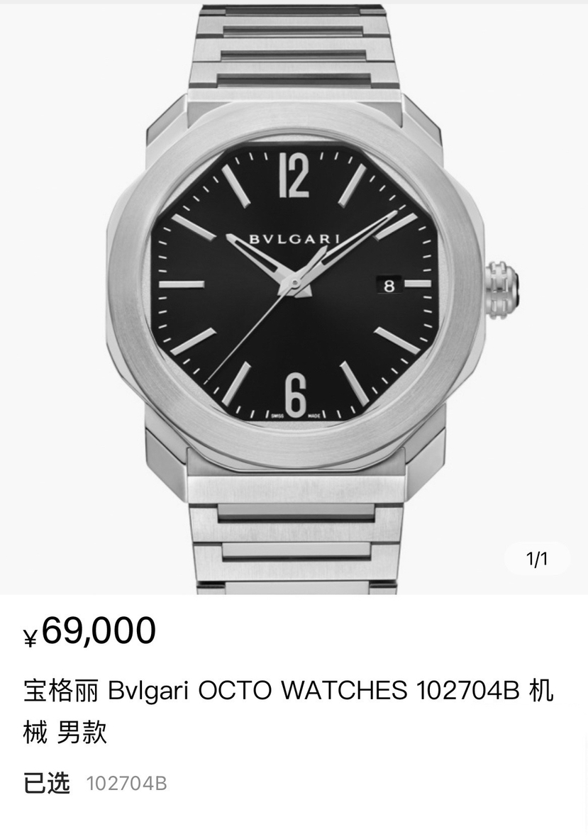此款为宝格丽最高端Octo系列男表,王彦霖和和何昶希代言同款。宝格丽Octo男表在巴塞尔国际钟表展屡获殊荣,享誉全球,标志性八角型外观,辨识度超高。