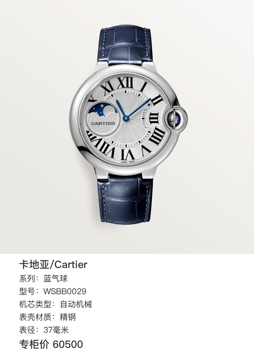 卡地亚蓝气球BALLON BLANCWSBB0020机械男性
