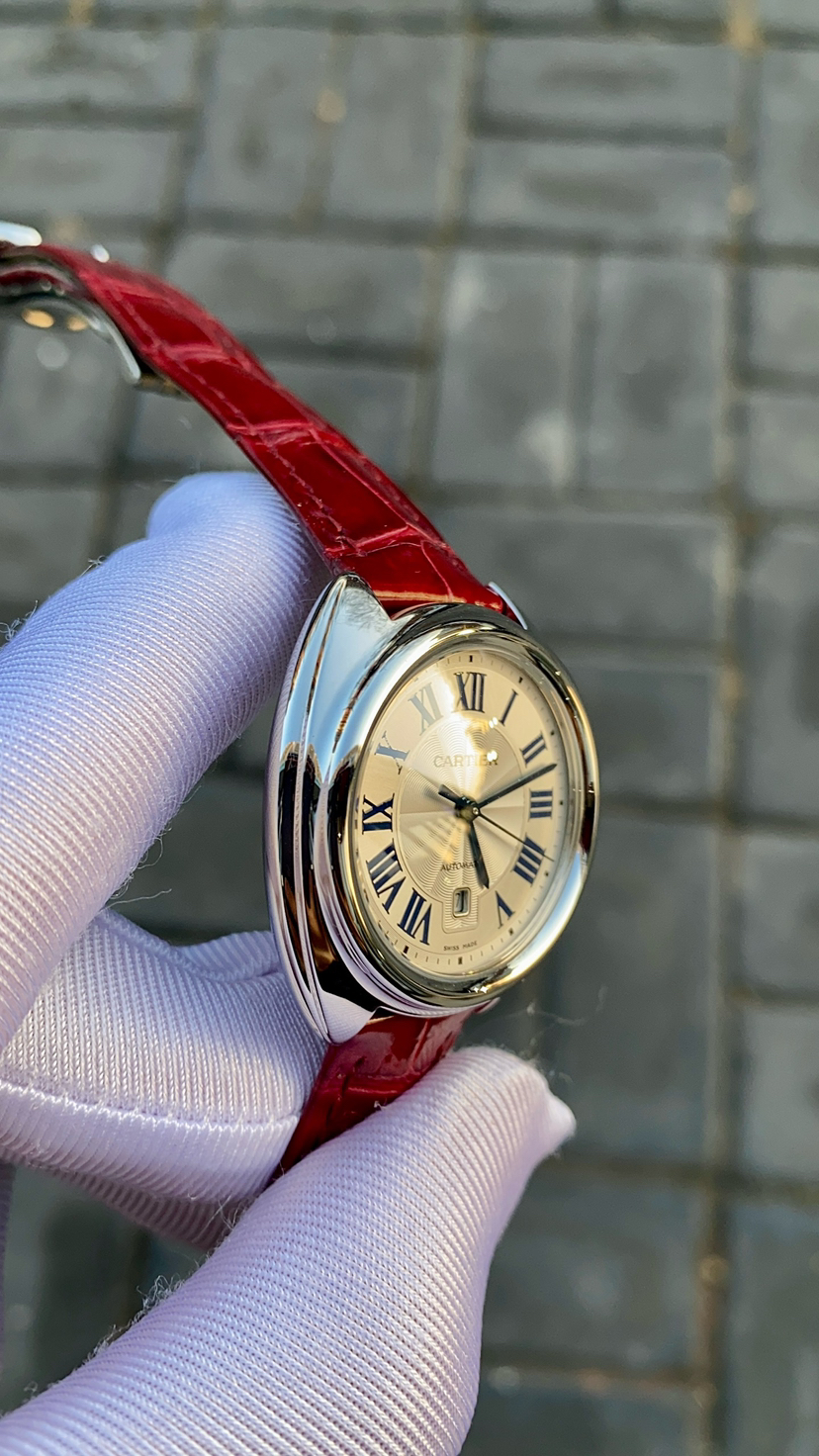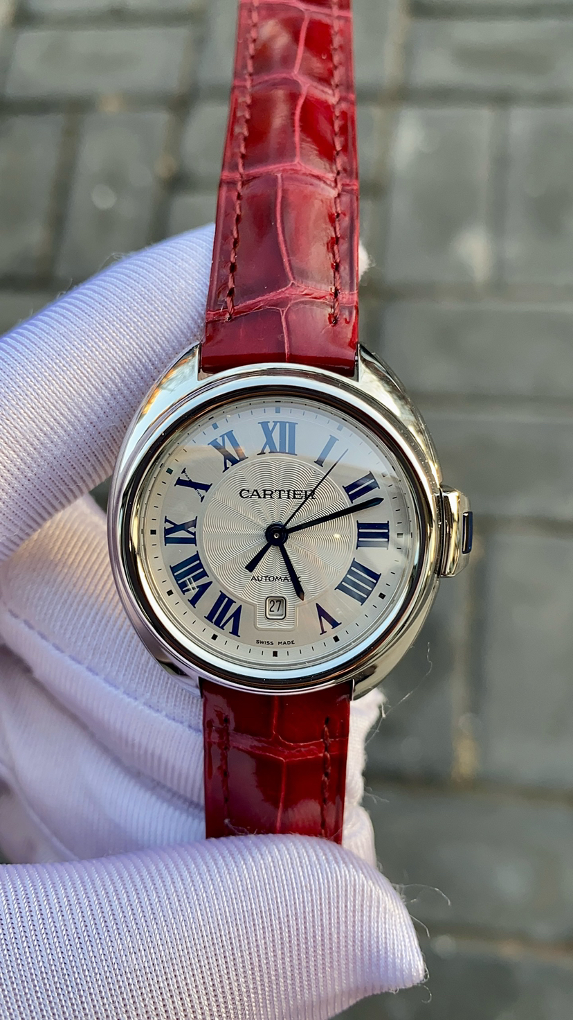 全新全套21年卡地亚钥匙系列WSCL0016 女款自动机械腕表 表经31毫米 精钢材质 蓝宝石镜面 日期显示功能 银色表盘 高端