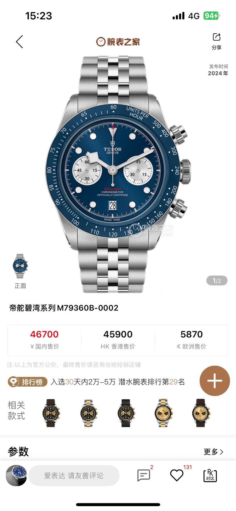 帝舵碧湾79360b-0002,蓝盘五珠链,