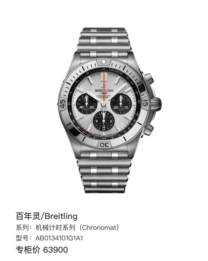 百年灵机械计时(Chronomat)AB0134101G1A1机械男性