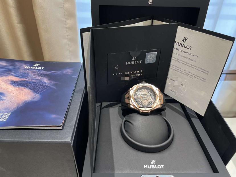 宇舶-BigBang 二代刺青,418.OX.1108.RX.MXM19,空白卡全套配件,极品成色,全球限量100枚。45毫米玫瑰金自动机械计时,原价361000,现货