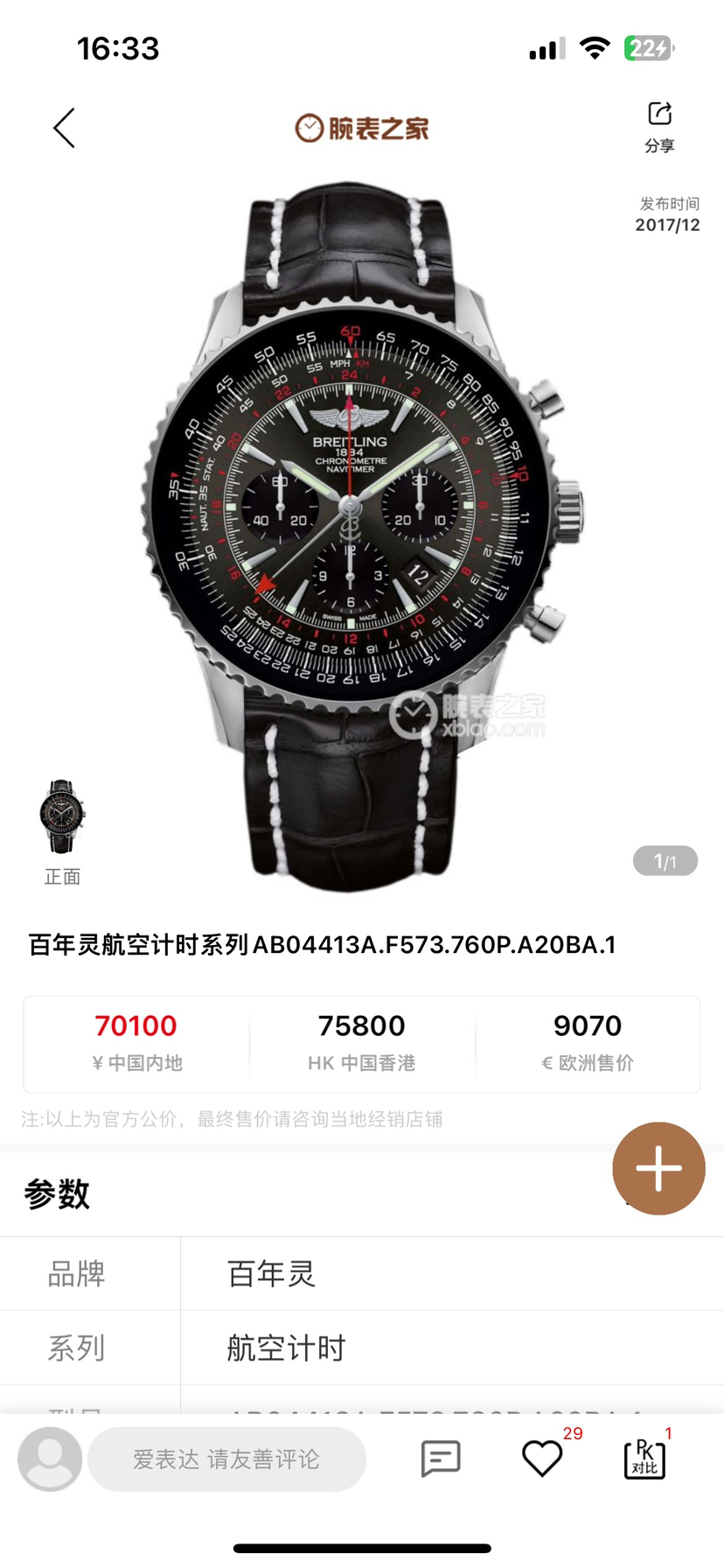 百年灵航空计时1(Navitimer 1)AB04413A机械男性