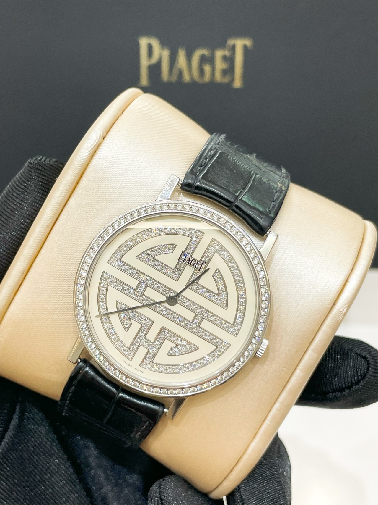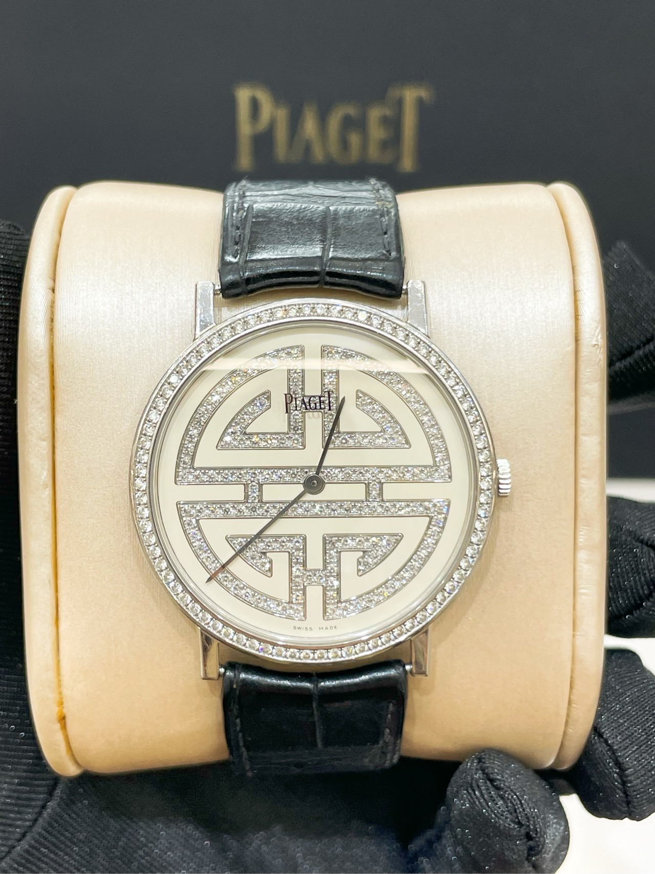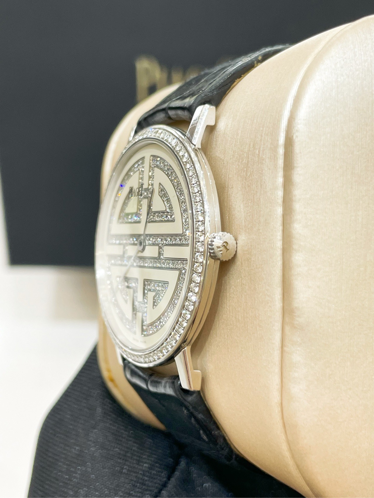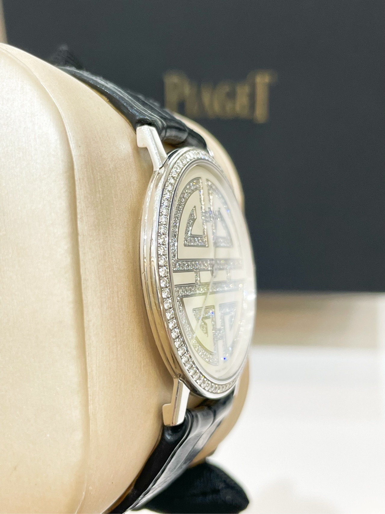 伯爵 G0A36507 表径38mm 整表18k白金材质,奶油白面,顶级满钻镶嵌,手动上链机芯,(0.7mm)超薄表壳设计,顶级材质 巅峰工艺,官方售价约310000,单表好价
