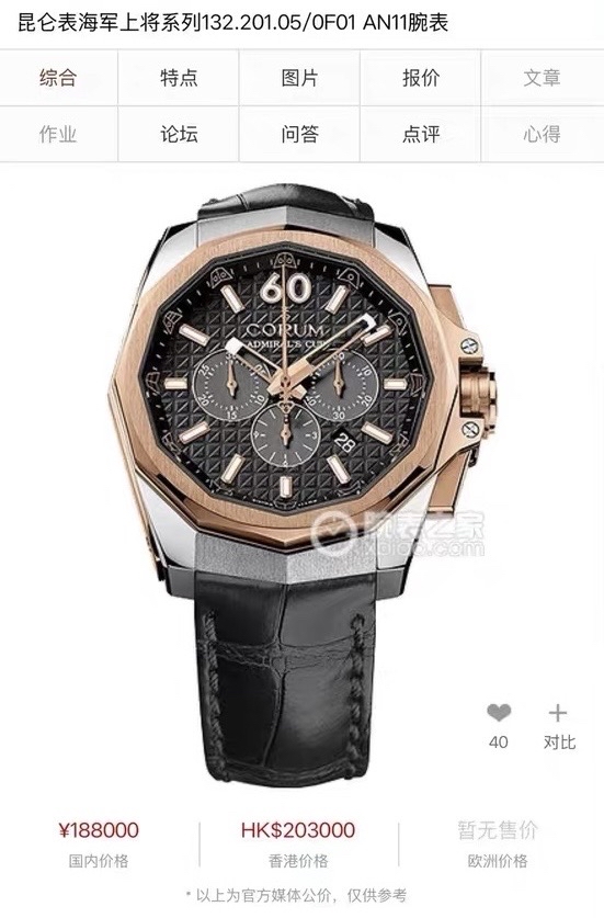 昆仑 海军上将 132.201.05/0F01 自动机械 45mm表径 18K玫瑰金圈 表、盒子 参考公价188000 现好价。