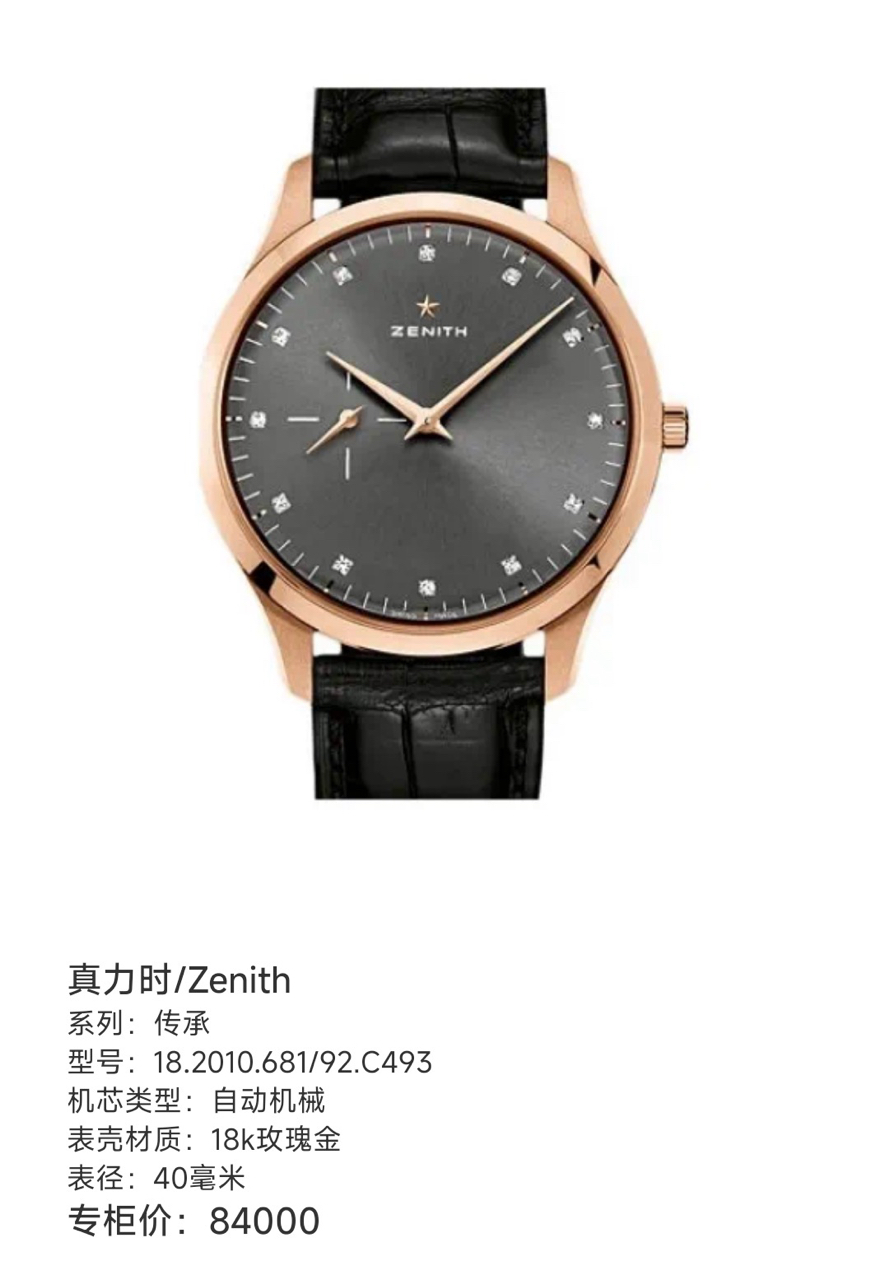真力时 传承 18.2010.681/92.C493 自动机械 18k玫瑰金 40mm表径 专柜价84000 现单表好价。