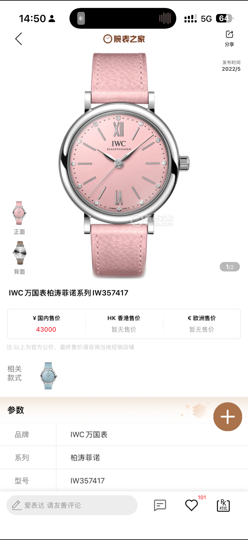 万国/IWC 柏涛菲诺 IW357417 自动机械 精钢 34毫米 专柜价42300。国行全新当天卡,现货好价!