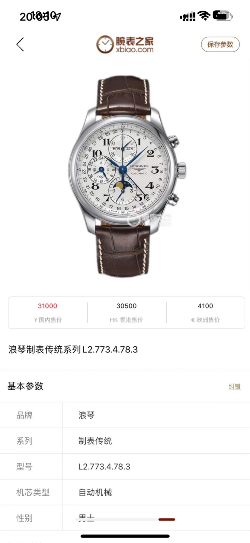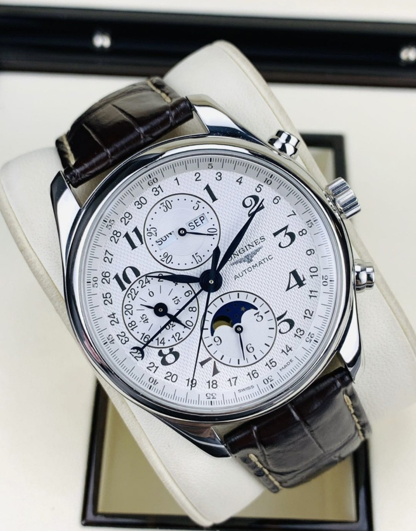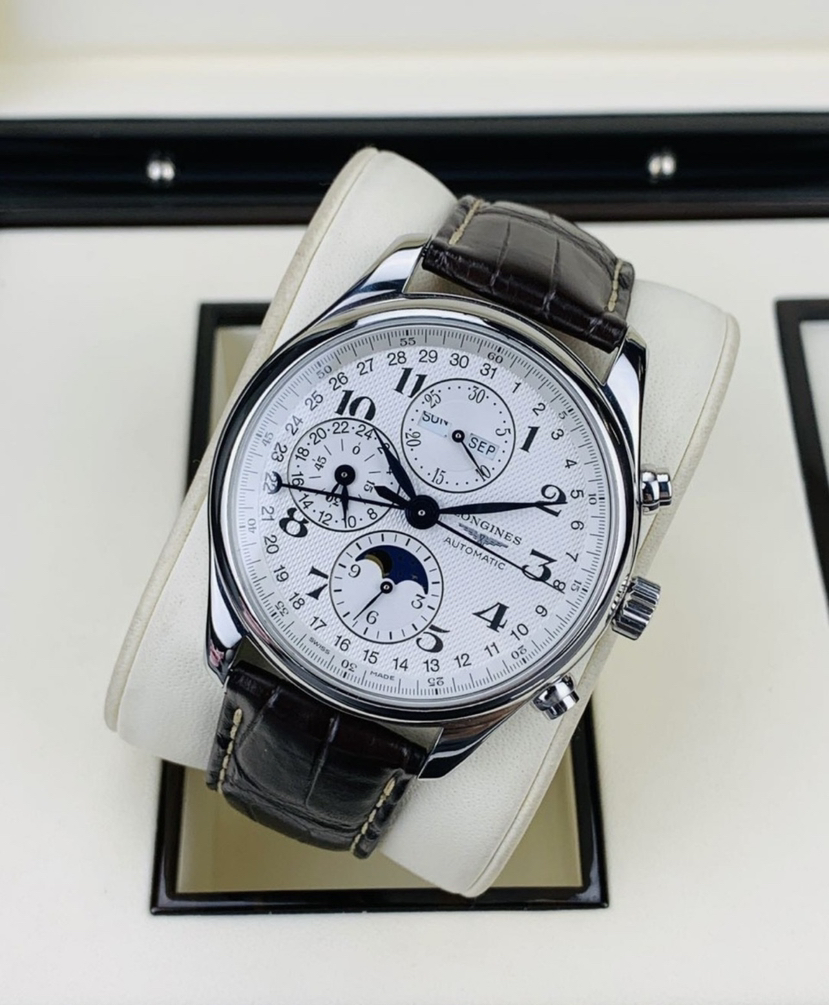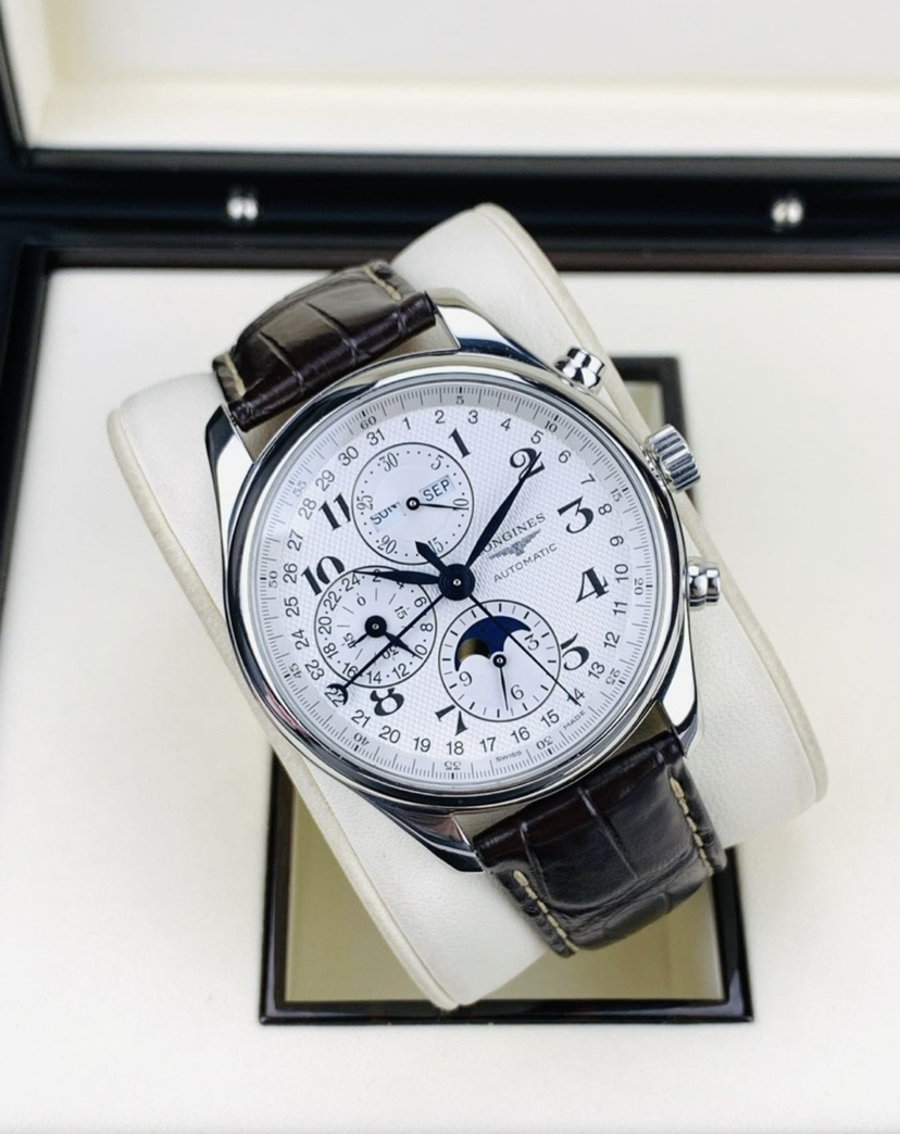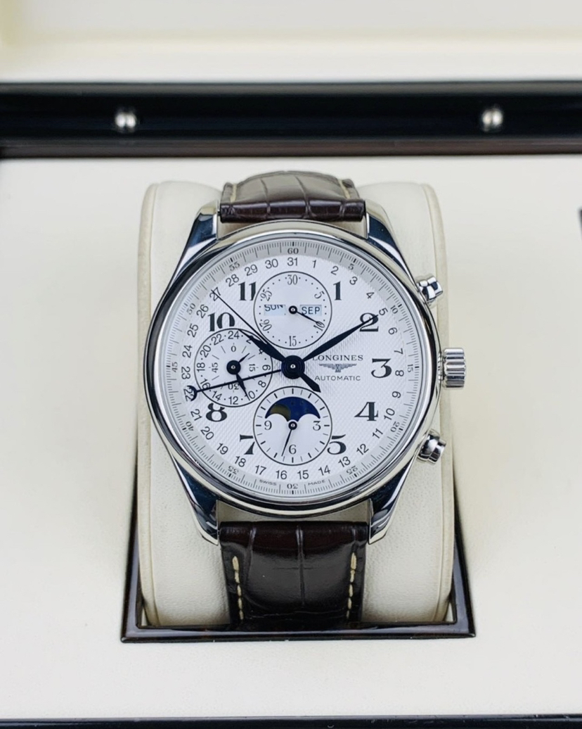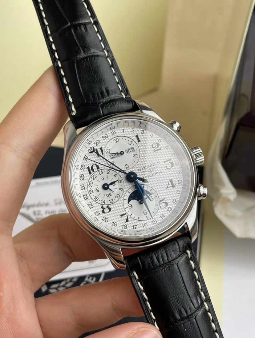 浪琴名匠系列,L2.773.4.78.3,男士腕表,表径42mm,白盘八针计时月相星期日期月份显示,Cal.L687自动机械机芯,24年全套,后配全新表带,专柜公价31000,现货好价